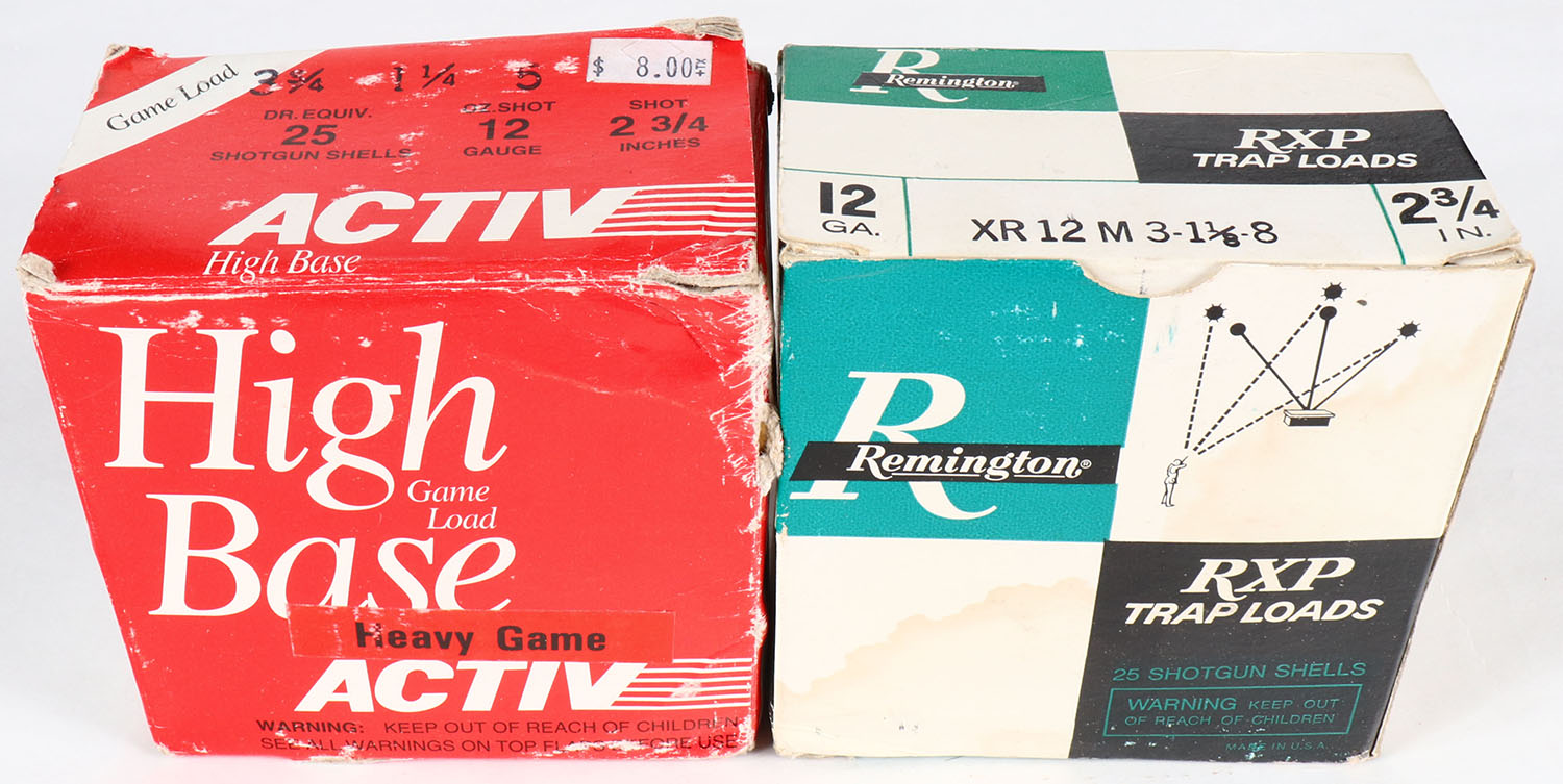 Lot of 2 Activ & Remington, 12 ga., 1pc., Appears Full, shot size 8 & 5, multi-colored boxes. Grade: Good ++ - Value: 10 to 30
