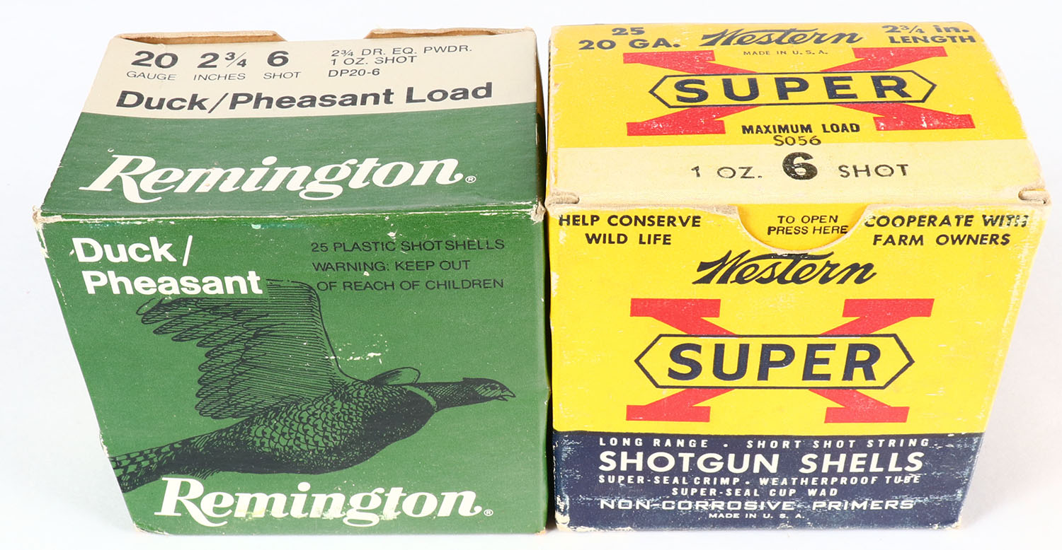 Lot of 2 Western & Remington, 20ga., 1pc., Appears Full, shot size 6, multi-colored box. Grade: Very Good - Value: 10 to 30