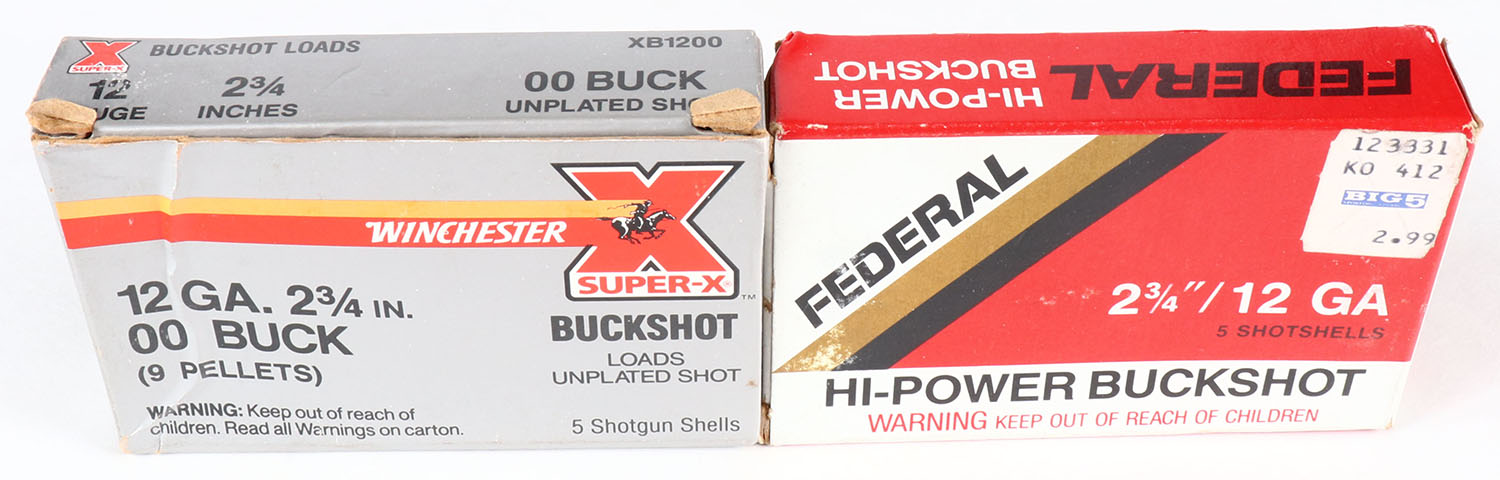 Lot of 2 Winchester & Federal, 12ga., 1pc., Appears Full, shot size 00 BUCK, multi-colored box. Grade: Very Good - Value: 10 to 30