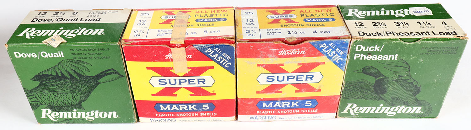 Lot of 4, Mixed Manufacture, 12ga., Appears Full, Shotshell Boxes. Grade: Very Good ++ - Value: 10 to 40