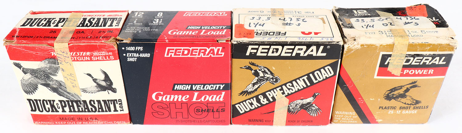 Lot of 4, Mixed Manufacture, 12ga., Appears Full, Shotshell Boxes. Grade: Very Good - Value: 10 to 40