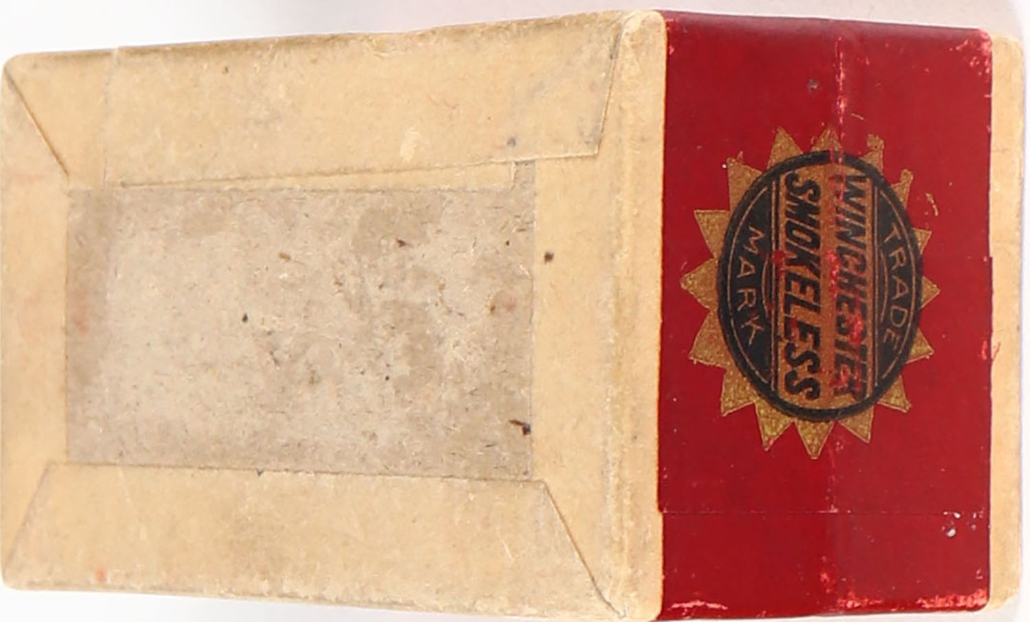Winchester, Smokeless Cartridges, .22 W.R.F., RR: WRA-151 WRF-13a, FULL & SEALED, 2pc. Buff box with red top & side sealing labels, box is solid with very good to excellent color, some shelf wear, very minor color fading, very minor edge & corner wear, labels are intact. Grade: Very Good ++ - Value: 100 to 400