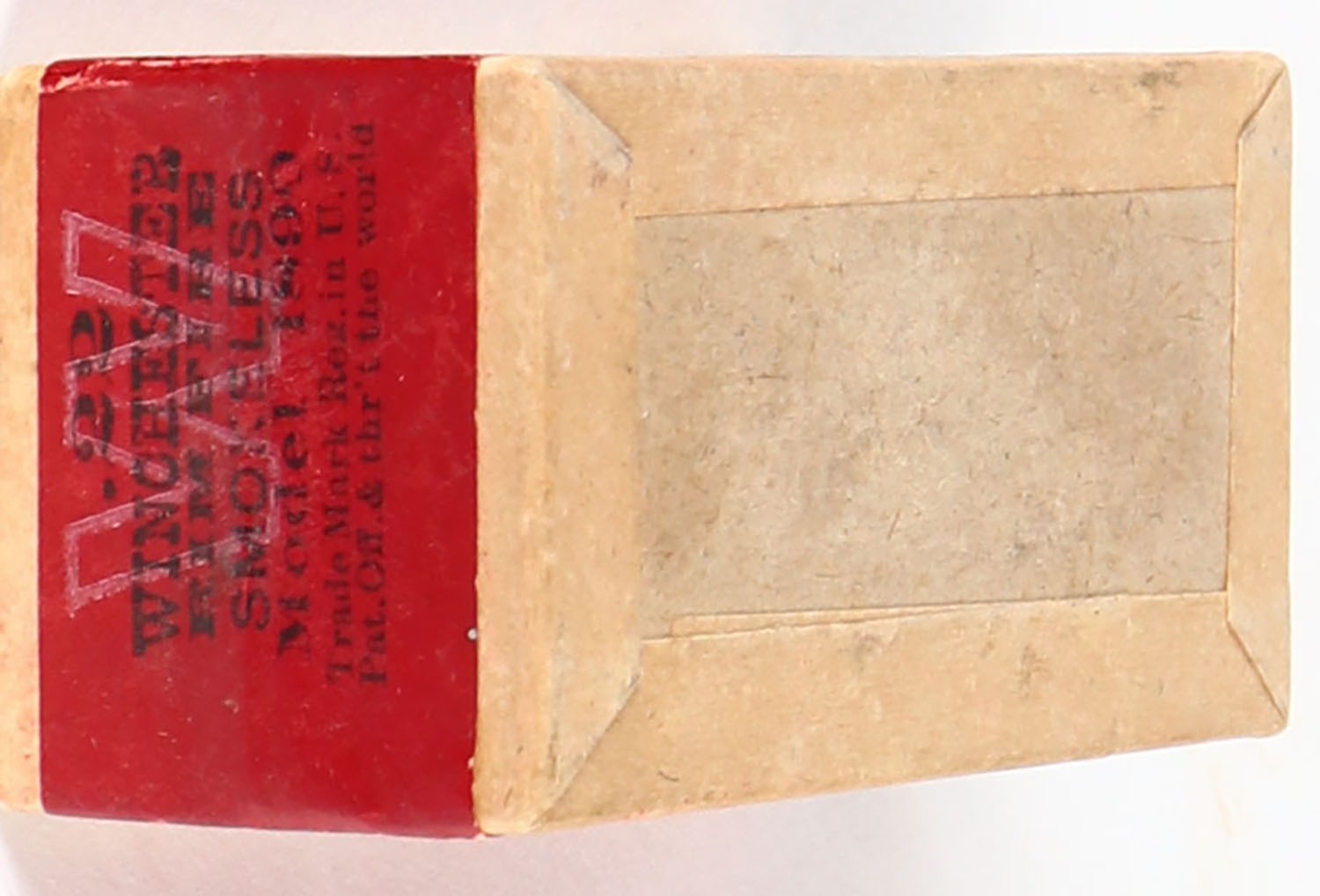 Winchester, Smokeless Cartridges, .22 W.R.F., RR: WRA-156 WRF-21a, FULL & SEALED, 2pc. Buff box with red top & side sealing labels, box is near mint with minty color, only very minor shelf wear & corner wear, edges are crisp, labels are intact. Grade: Excellent ++ - Value: 200 to 800