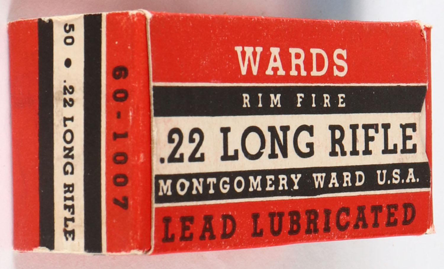 Wards, Cleanfire, .22 Long Rifle, Lead Lubricated, RHWeb: MW-4A LR-1, Full, 1pc. Red white & black box, box is solid with excellent color, very minor corner wear, edges are crisp, end flaps are solid, ammo is excellent. Grade: Excellent + - Value: 10 to 40