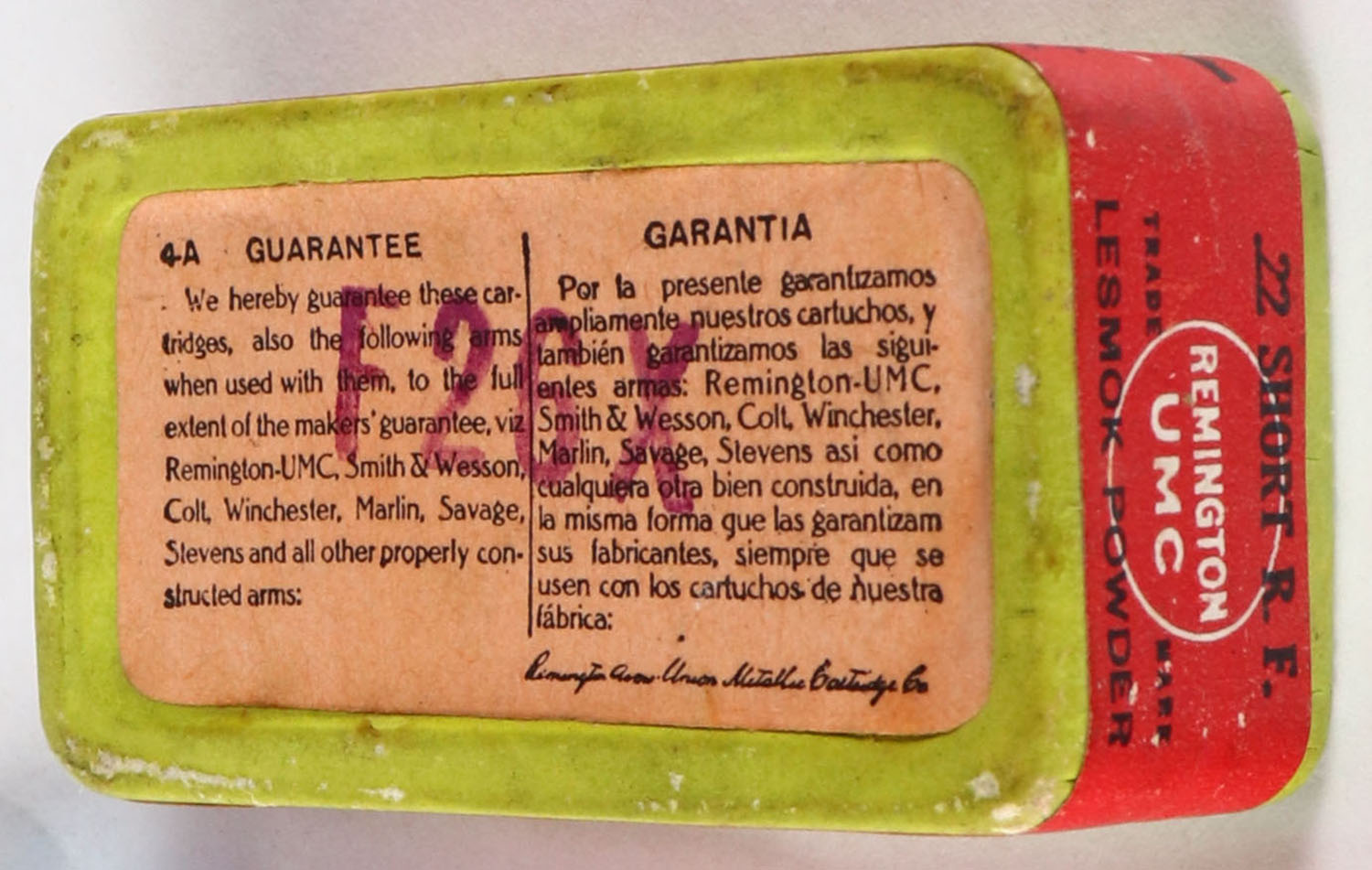 | REM-UMC, R.F. Lesmok Cartridges, .22 Short, RHWeb: REM-2 S-2f, F...