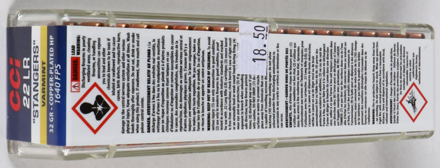 CCi, 22 Plinkster Special Edition ''Stangers'', .22 Long Rifle Stinger, FULL & SEALED, 2pc. Clear plastic tray with multi-colored sealing label, box and label are MINT with mint color, ammo appears mint. Grade: MINT - Value: 10 to 50