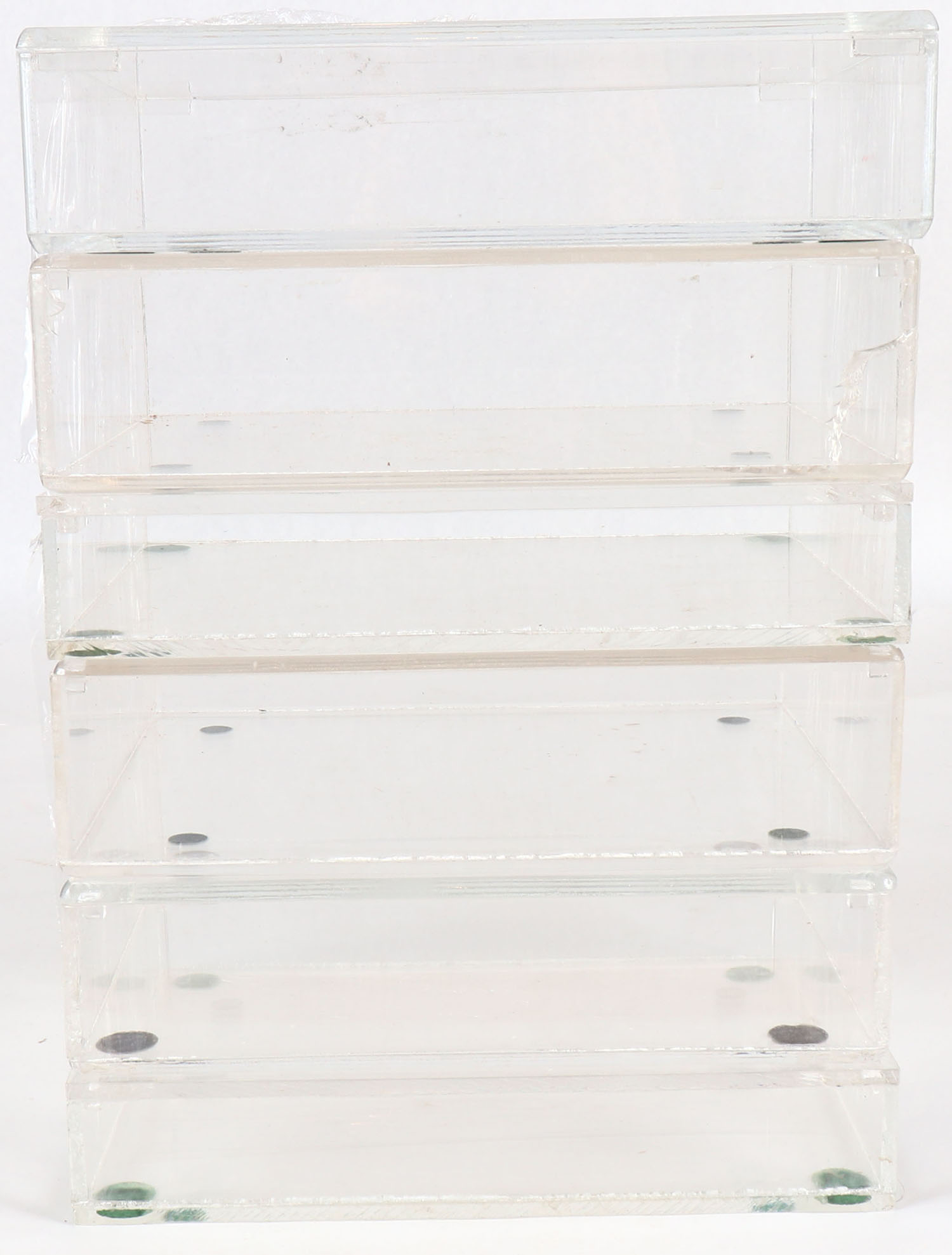Lot of (6) hand made acrylic .22 Display cases, cases vary in sizes but measure approx. 10 1/2'' x 9'' x 2 1/2'', cases are solid. Grade: Excellent - Value: 20 to 100