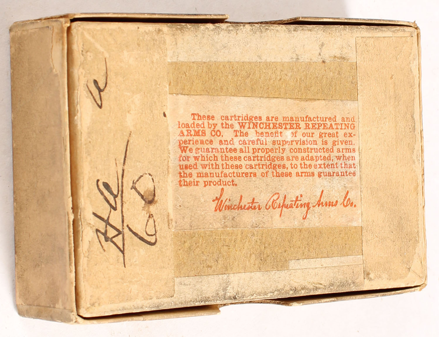 Winchester, .38-90-217 Winchester Express, Single Shot, Full, 2pc. Buff box with blue label, box is solid with very good to excellent color, some age soiling, some edge & corner wear, label is intact, ammo is excellent. Grade: Excellent - Value: 200 to 600