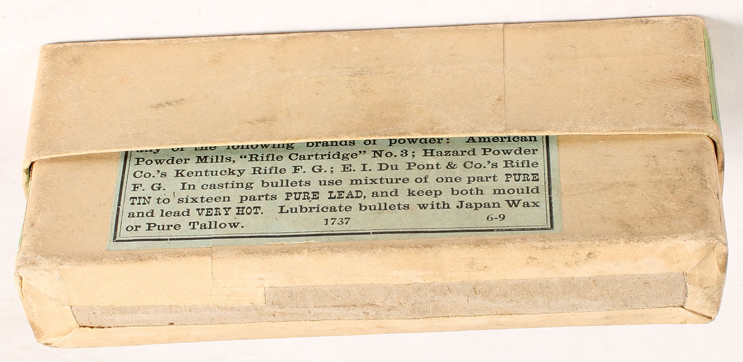 Winchester, Government Cartridges, .45-70-405, Extra Heavy, Solid Head, FULL & SEALED, 2pc. Buff box with green labels, box is solid with excellent color, very minor age soiling, minor corner wear, edges are mostly crisp, labels are intact. Grade: Excellent + - Value: 100 to 400