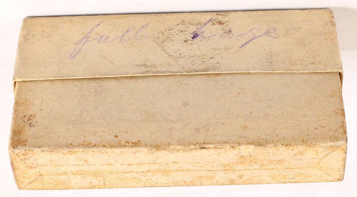 Winchester, Central Fire Cartridges, .25-36 Marlin, Smokeless, Full, 1pc. Buff box with green label, box is solid with very good color, some age soiling & shelf wear, some staining, minor edge & corner wear, back side has been written on, label is solid, ammo is excellent. Grade: Very Good - Value: 100 to 300