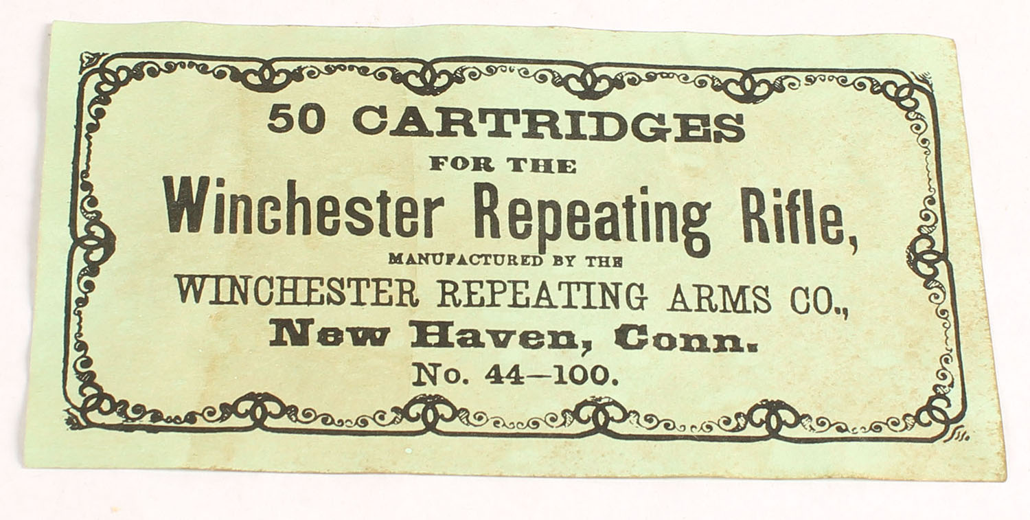 Winchester, Cartridges for the Winchester Repeating Rifle, No. 44-100, Top Label Only, label is solid with very good to excellent color, minor age soiling & staining. Grade: Excellent - Value: 4 to 40