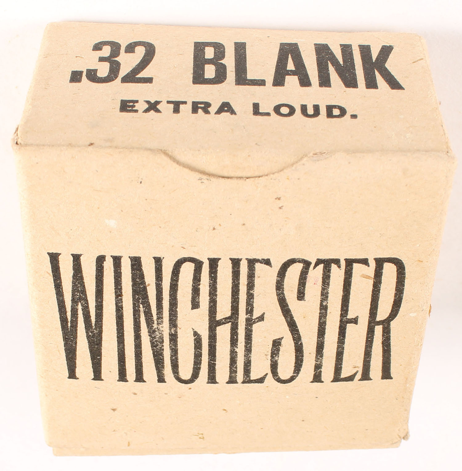 Winchester, Blank Cartridges, .32 Short Rim Fire, Extra Loud Report, Full, 1pc. Buff box with black printing, box is solid with excellent color, minor corner wear, very minor edge wear, flaps are solid, ammo is good. Grade: Excellent - Value: 8 to 40