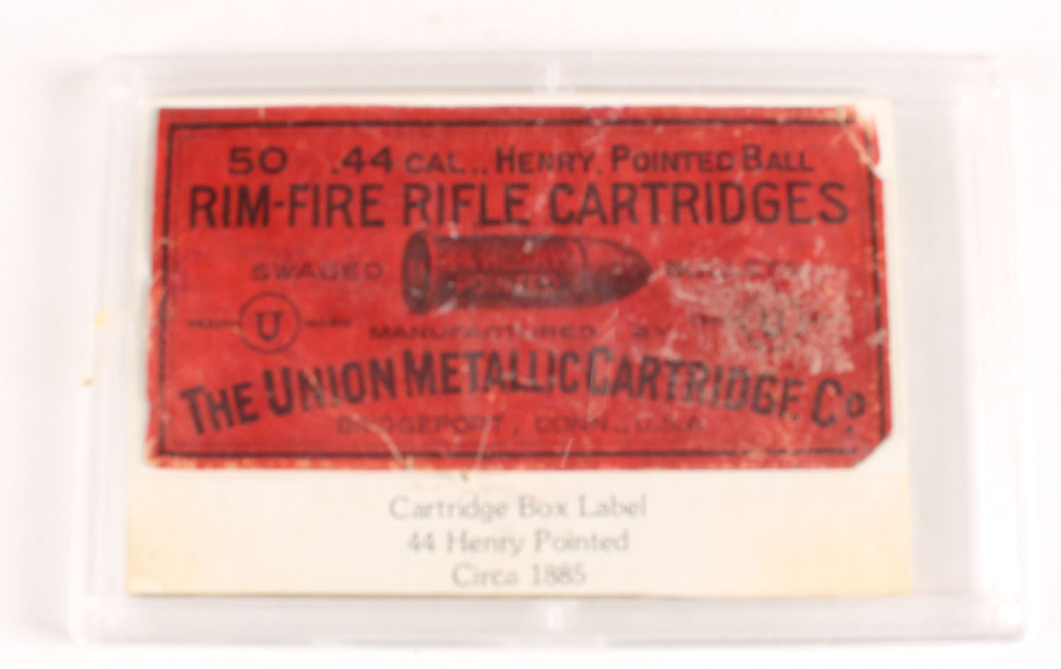 UMC, Rim-Fire Rifle Cartridges, .44 Henry, Pointed Ball, Label only, label has excellent color with very little wear, small tear in top right corner. Grade: Excellent - Value: 6 to 60
