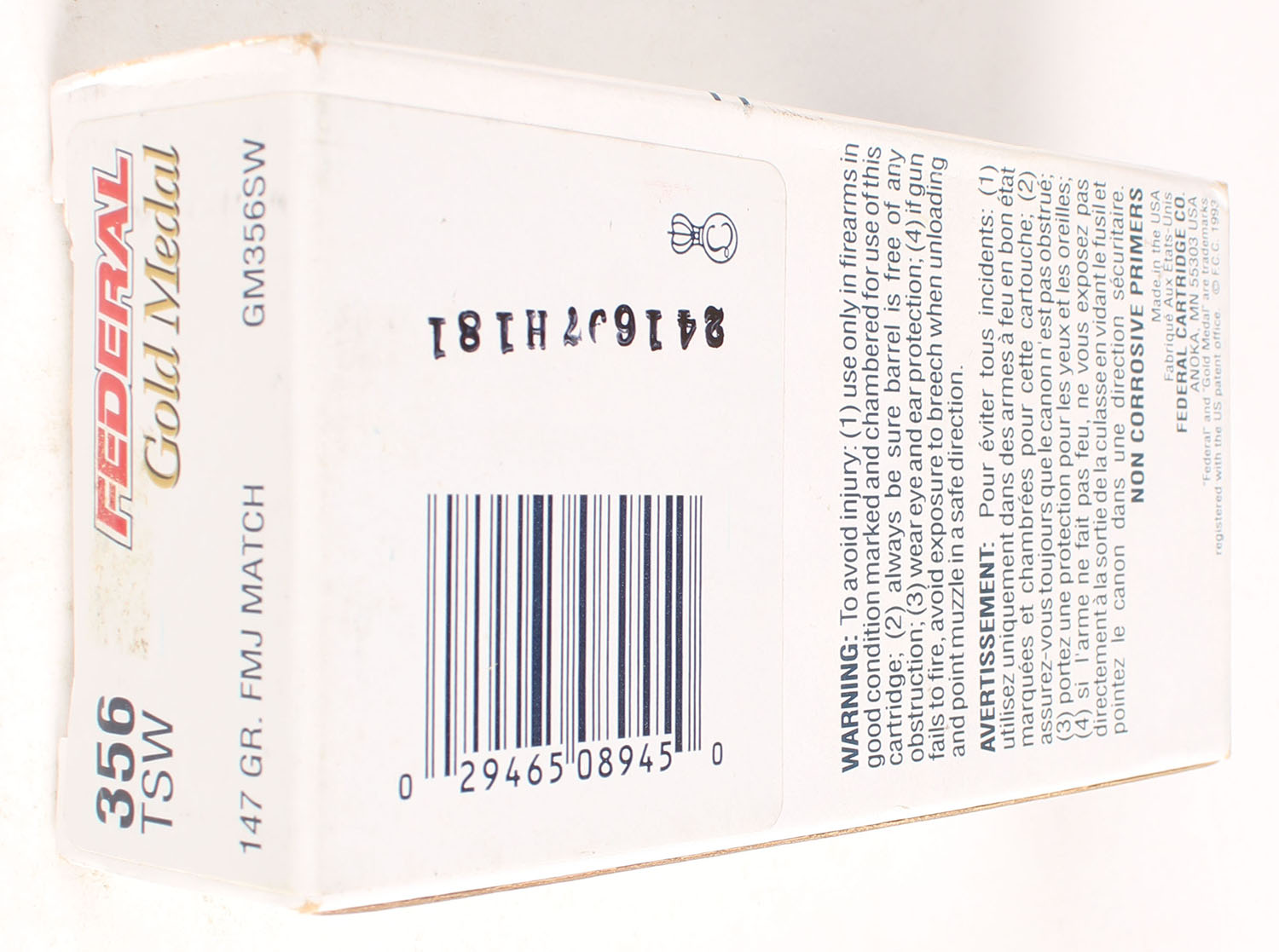 | Federal, Gold Medal, 356 TSW, 147 Gr. FMJ Match, Full, 1pc. Box ...