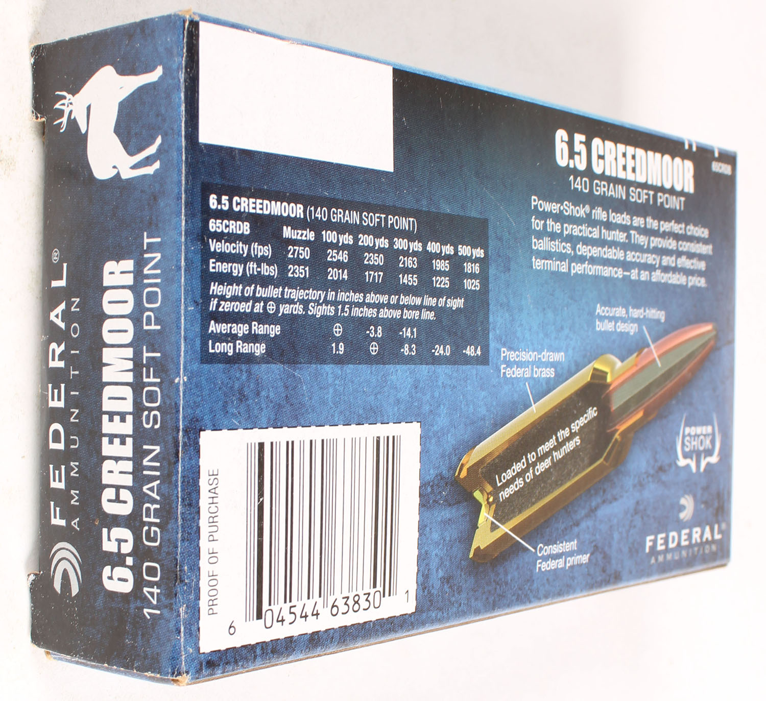 Federal, Power Shok, 6.5 Creedmoor, 140 Grain Soft Point, Full, 1pc. multi-colored box, box is solid with excellent color, Ammo is excellent. Grade: Excellent ++ - Value: 20 to 60