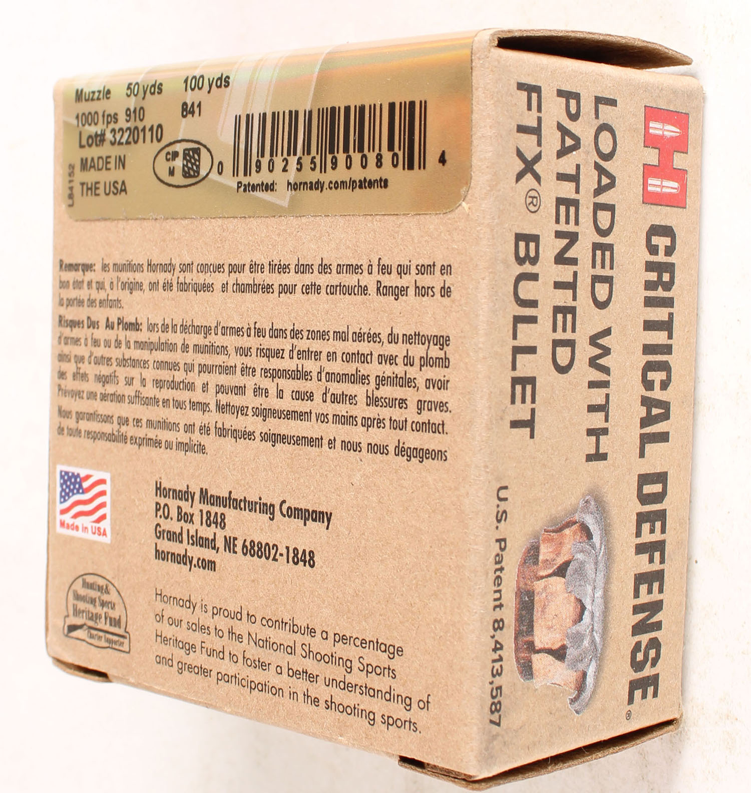 Hornady, Critical Defense, 380 Auto, 90 Grain FTX, Full, 1pc. multi-colored box, box is solid with excellent color, Ammo is excellent. Grade: Excellent ++ - Value: 20 to 50