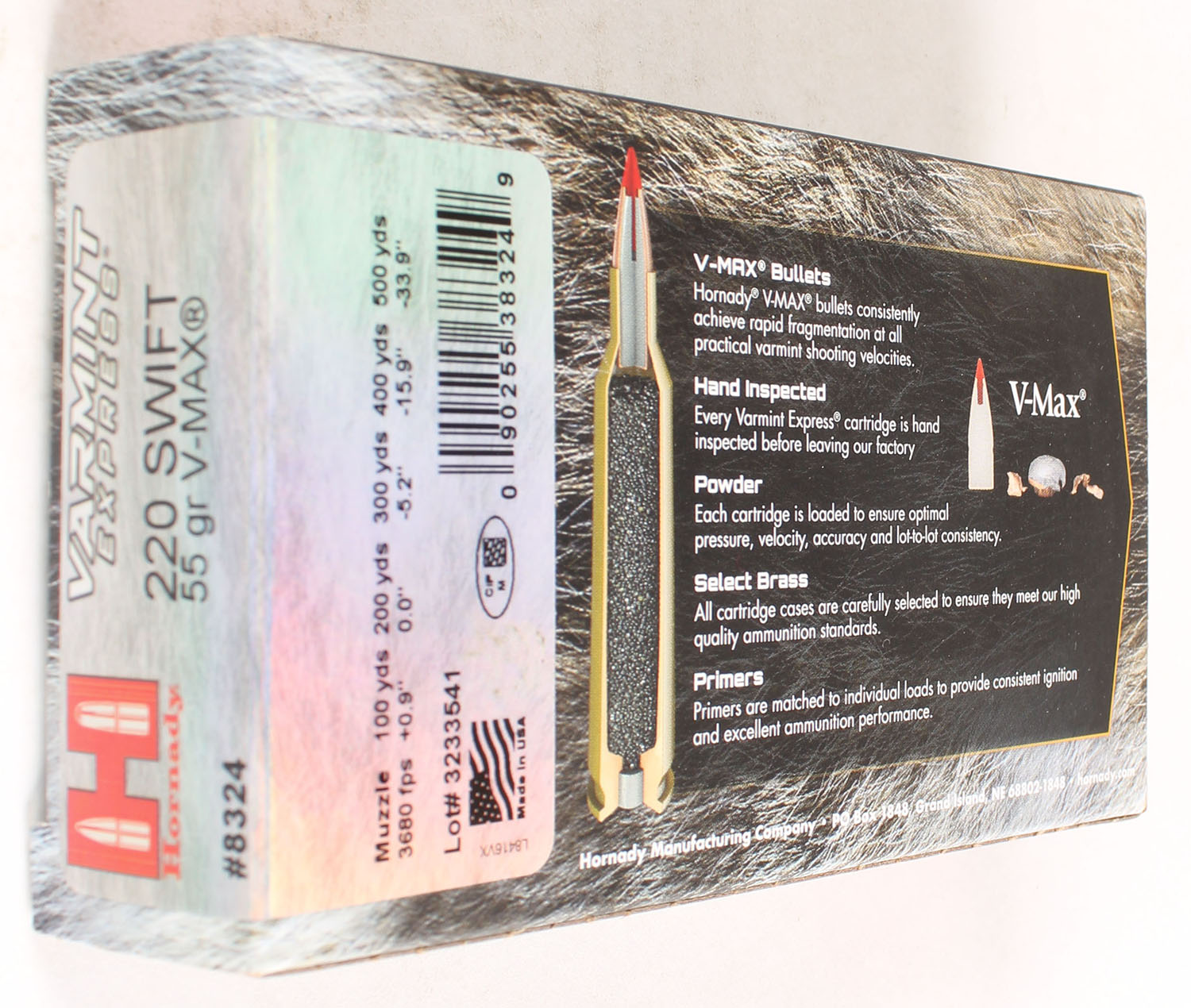| Hornady, Varmint Express, 220 SWIFT, 55 Grain V-Max, Full, 1pc. ...