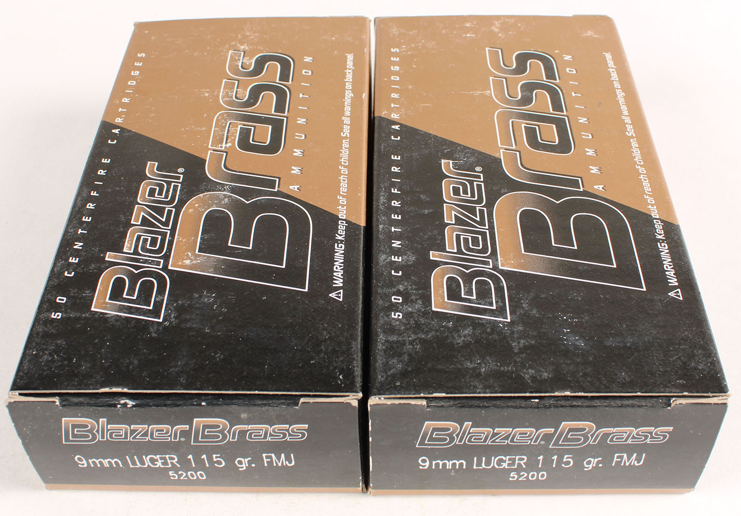 Lot of (2) CCI, Blazer Brass, 9mm Luger, 115 Grain FMJ, Full, 1pc. multi-colored boxes, boxes are solid with excellent color, Ammo is very good. Grade: Excellent - Value: 20 to 60