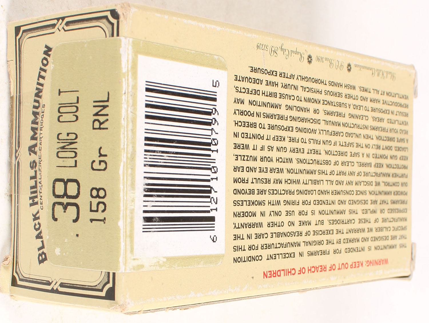 Black Hills, .38 Long Colt, 158 Grain RNL, Full, 1pc. multi-colored box, box is solid with excellent color, Ammo is excellent. Grade: Excellent - Value: 20 to 100