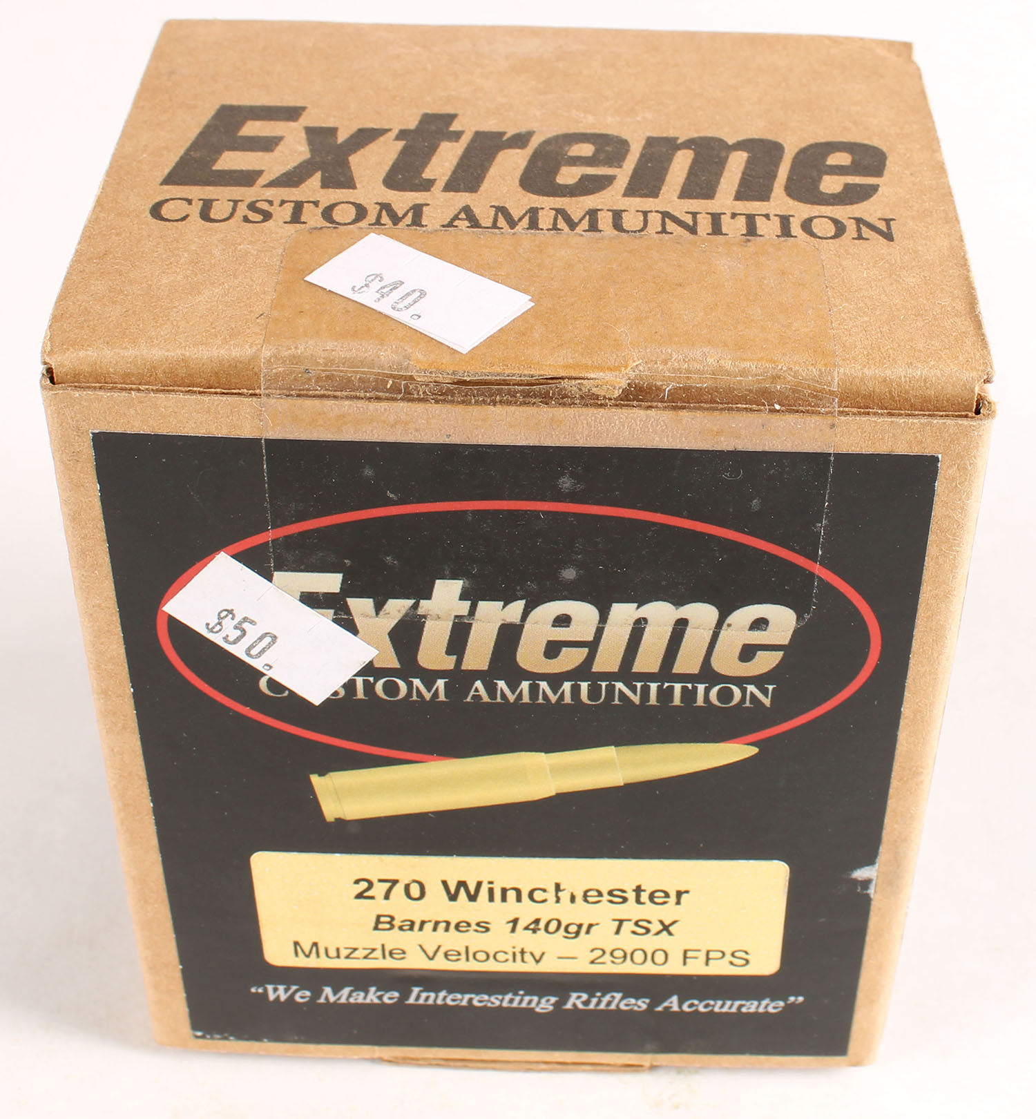 Extreme Custom Ammunition, 270 Winchester, Barnes 140 Gr. TSX, Full, 1pc. Box is solid with multi-color label, ammo is excellent. Grade: Excellent - Value: 10 to 40