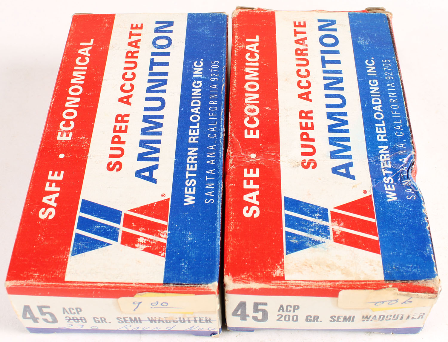 Lot of 2 Western Reloading Inc., 45 ACP, 200 Gr. Semi Wadcutter, Full, 1pc, multi-colored box, box has shelf wear, Ammo is good. Grade: Very Good - Value: 20 to 60