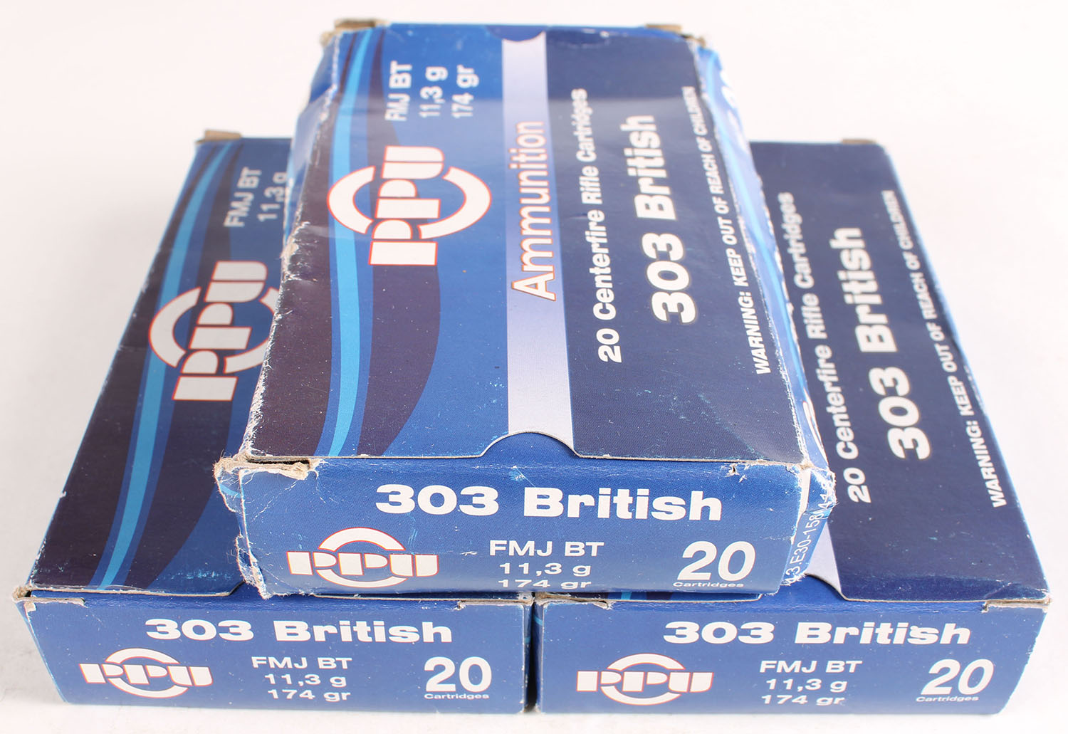 | Lot of 3 PPU, 303 British, 174 Gr. FMJ BT, Full with 1 box being...