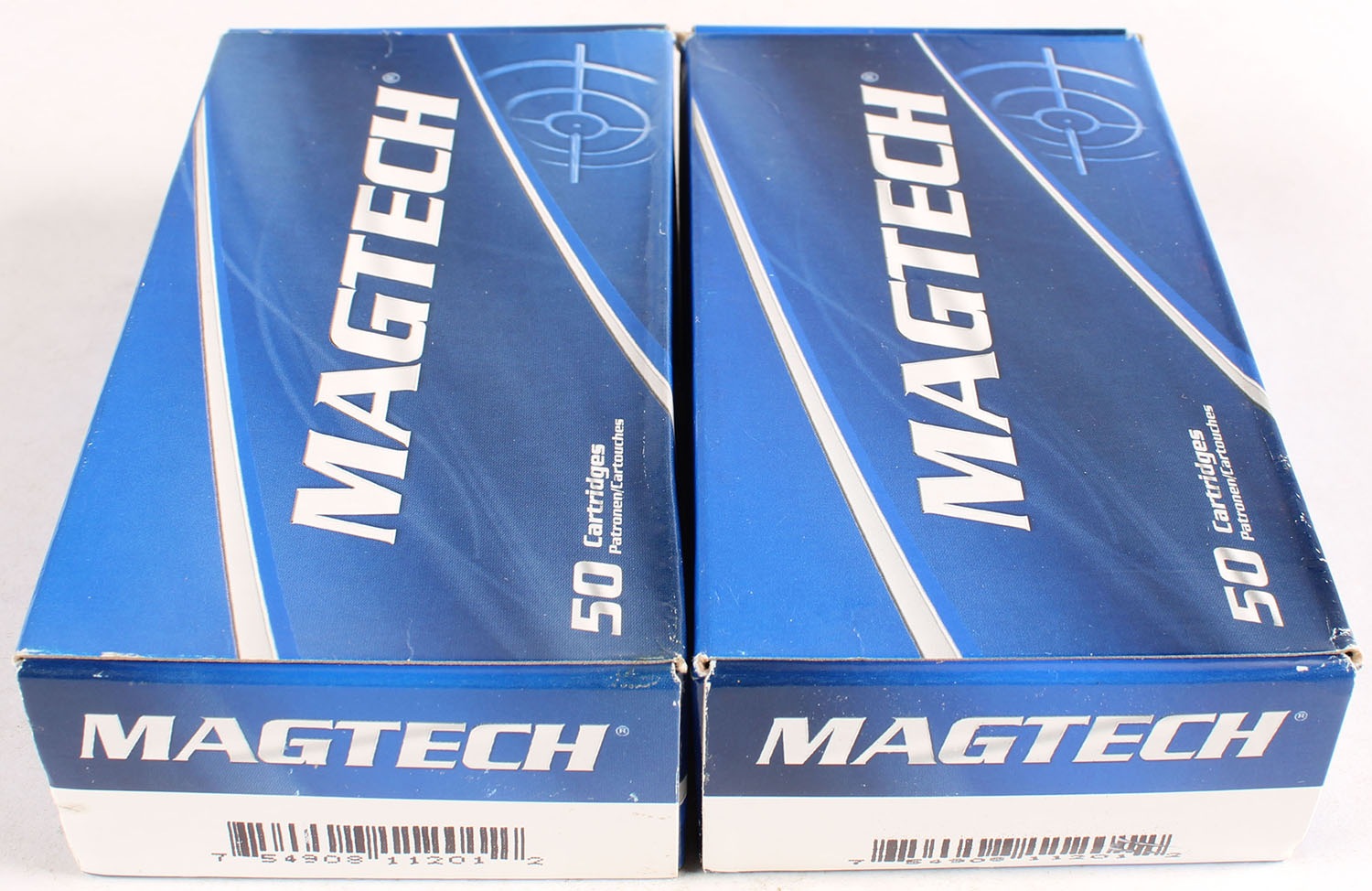 Lot of 2 Magtech, .380 Auto, 95 Gr. FMJ, Full, 1pc. Blue boxes, boxes are near mint, ammo is minty. Grade: Excellent ++ - Value: 20 to 60
