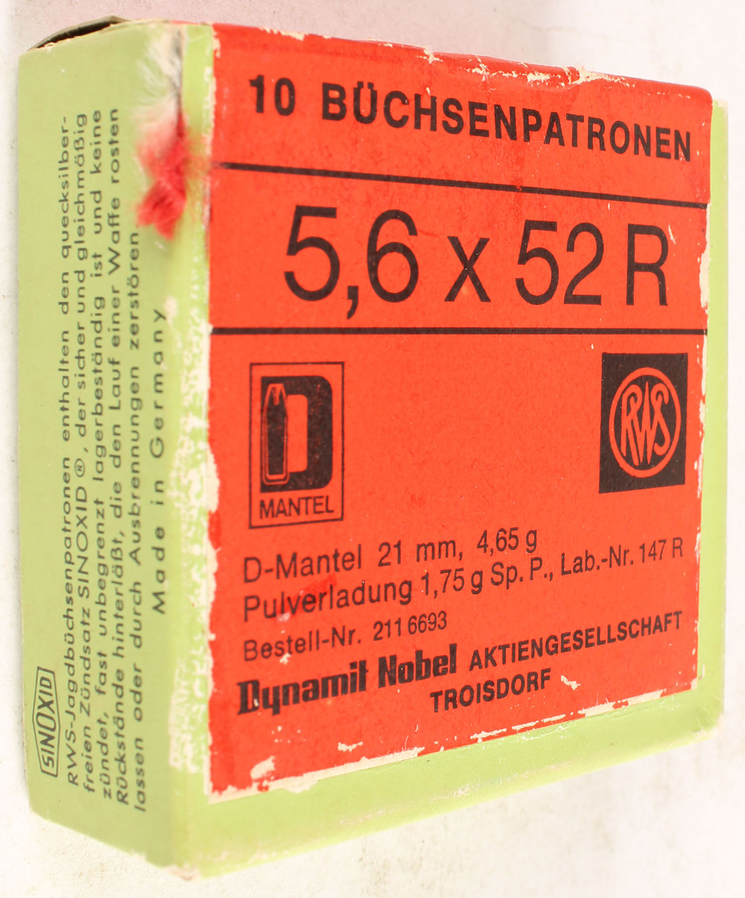 RWS, 5.6x52R, 72 Grains, FULL & SEALED, 1pc, Green box with red label, box is solid with scuffing. Grade: Very Good ++ - Value: 10 to 40
