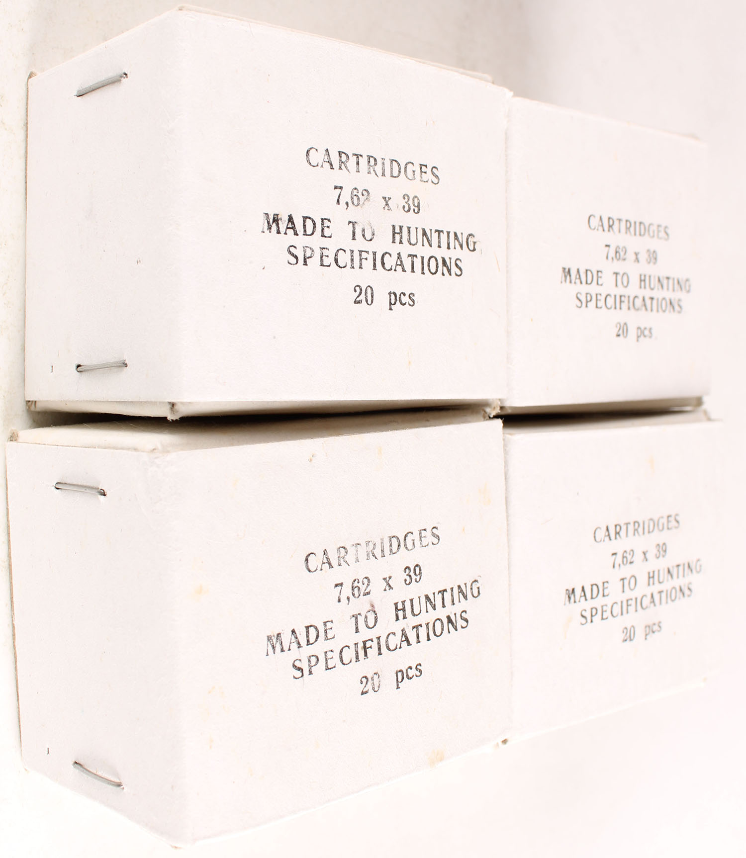 | Lot of 4 Unknown Russian Mfg., 7.62 x 39, buff boxes with black ...