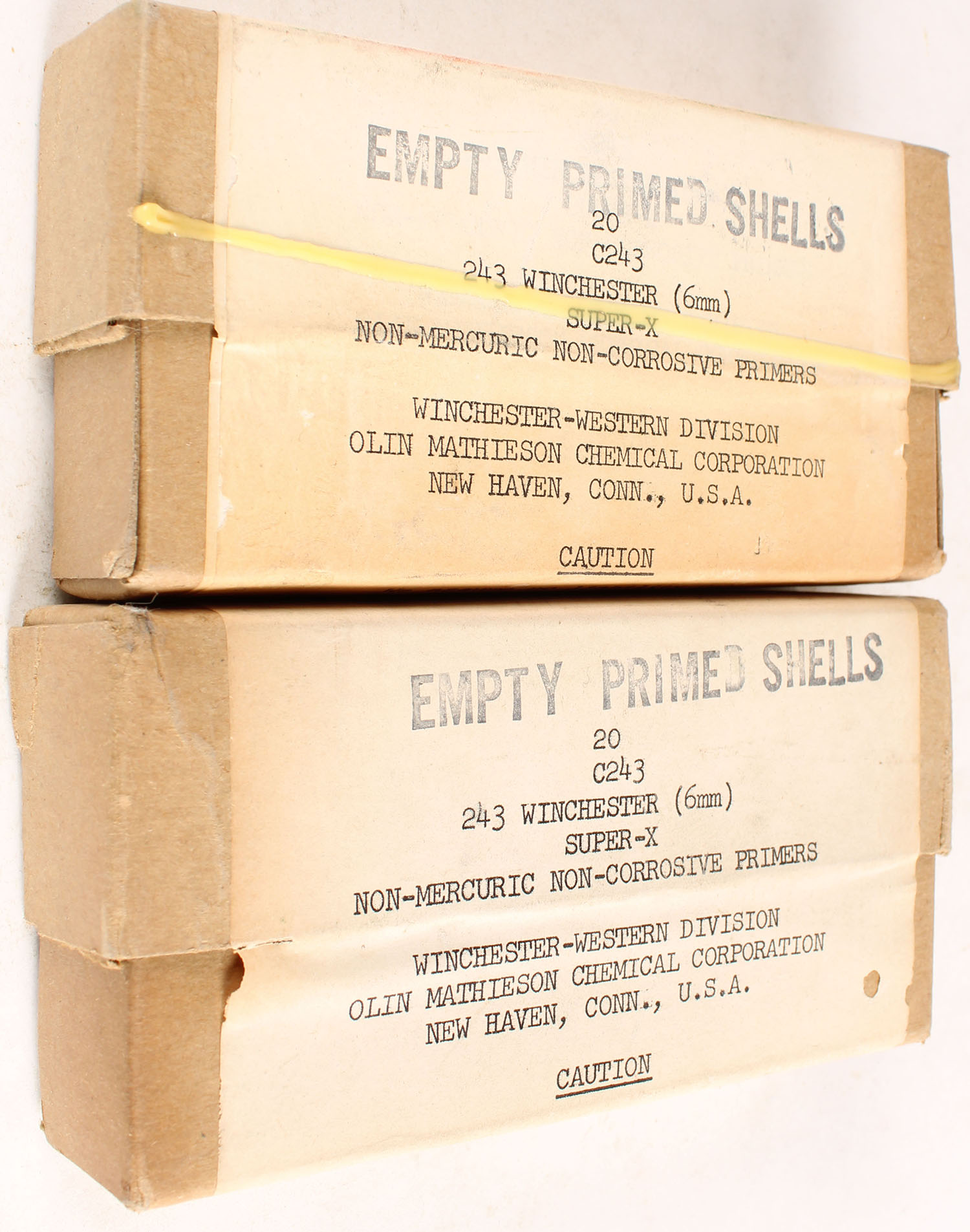 Lot of 2 Winchester-Western, Empty Primed Shells, .243 Sin (6mm), Super-X, 2pc., FULL & SEALED. Grade: Excellent - Value: 10 to 50