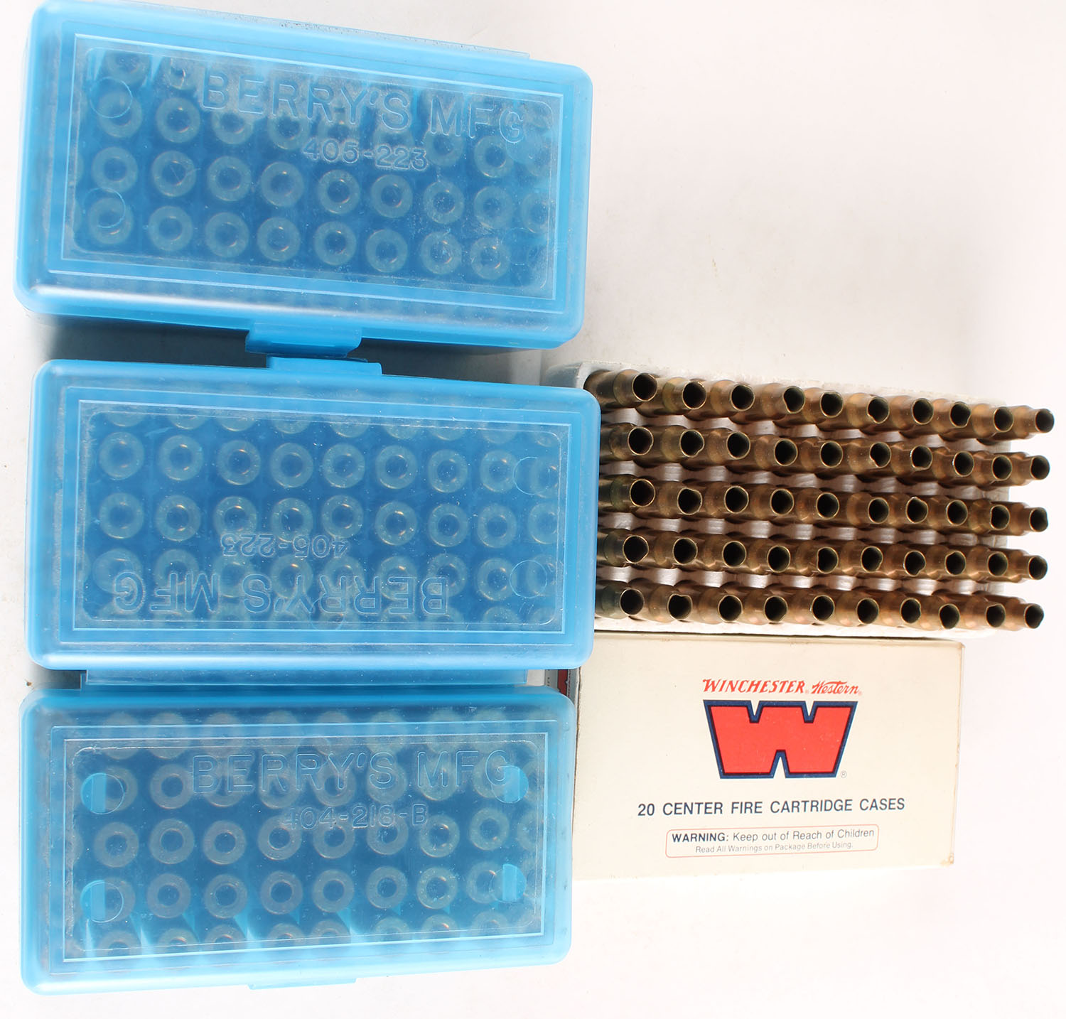 Large Lot of .223 Unprimed Brass, Plastic boxes are solid. Grade Very Good ++ - Value: 20 to 100