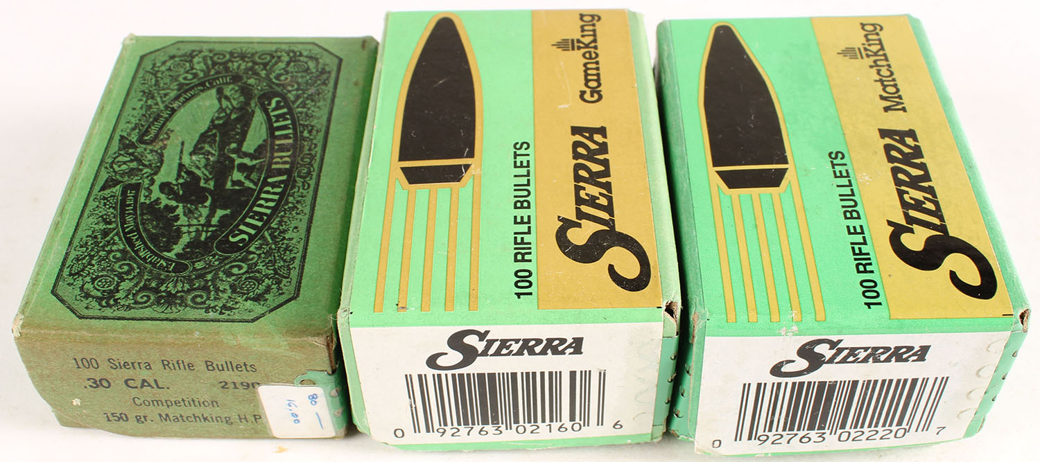 Lot of 3 Sierra, .30 Caliber, 180 Grain Spitzer, .308'' Dia., 2 Full & Partial box, 1pc. Green box, box is solid with excellent color, bullets are minty. Grade: Excellent - Value: 20 to 50