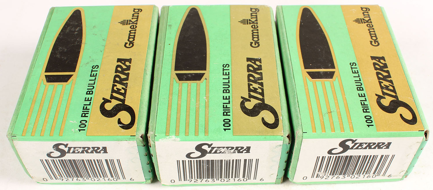 Lot of 3 Sierra, .30 Caliber, 180 Grain Spitzer, .308'' Dia., FULL & SEALED, 1pc. Green box, box is solid with excellent color, bullets are minty. Grade: Excellent - Value: 20 to 60