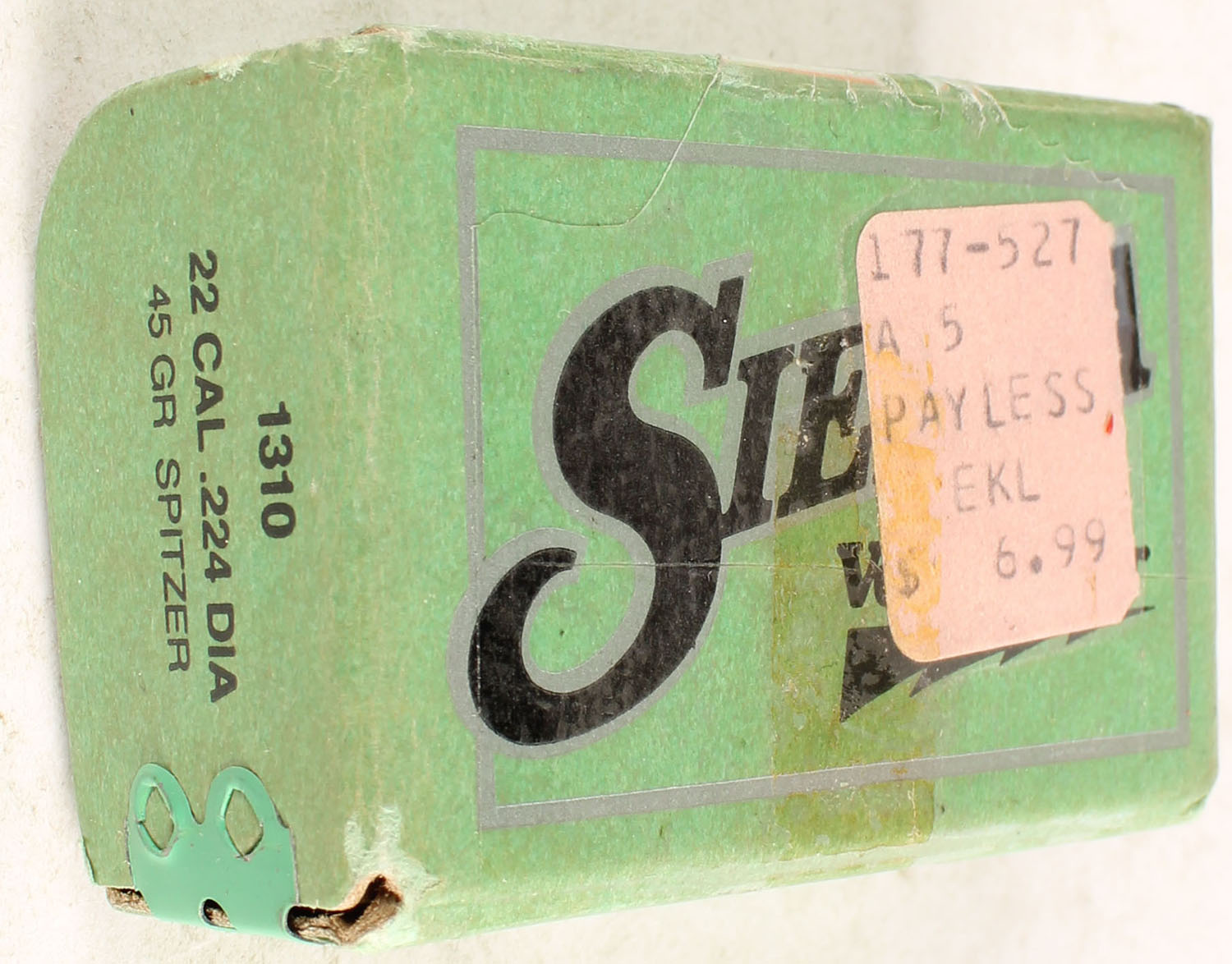 Sierra, 22 Cal., 45 Gr., .224 Dia., Full & Sealed, 1pc., green box, box is solid with excellent color. Grade: Excellent - Value: 10 to 40