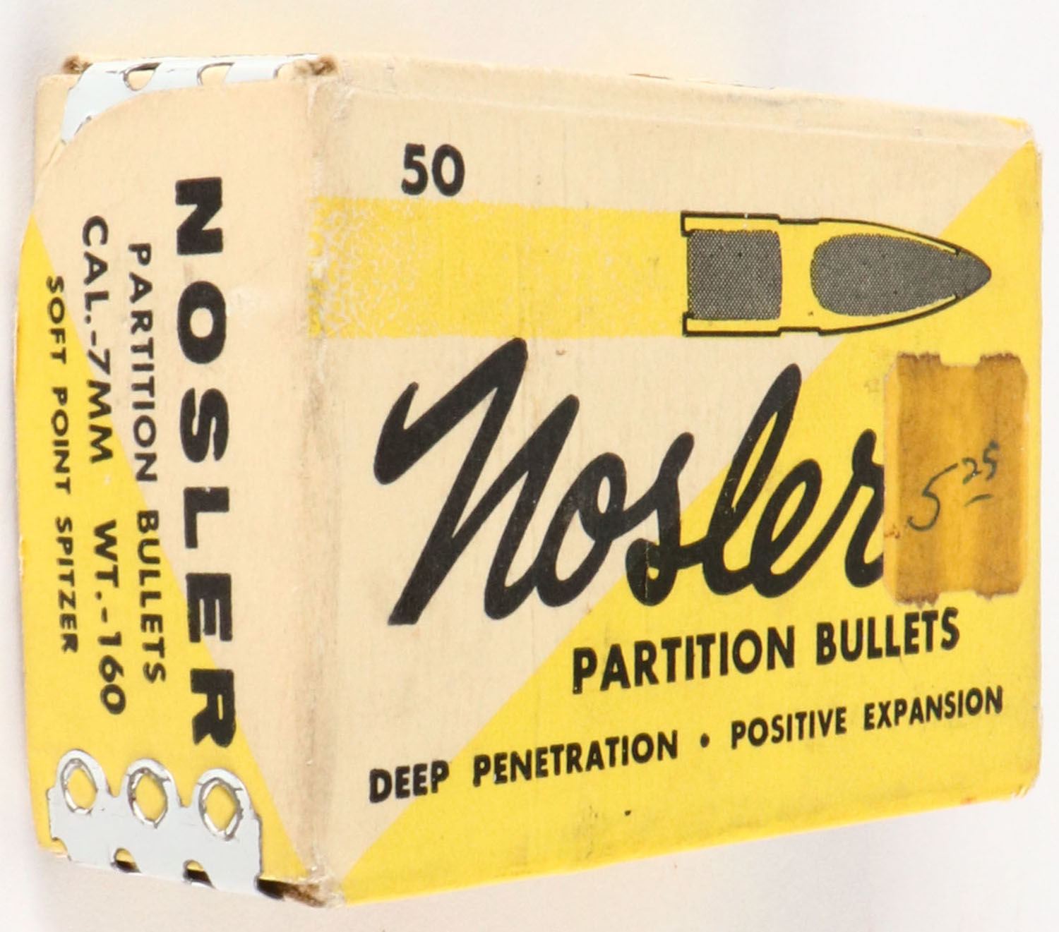 Nosler, 7mm Partition Bullets, Partial, 1pc, Yellow box is very solid, bullets are very good. Grade: Very Good ++ - Value: 10 to 30