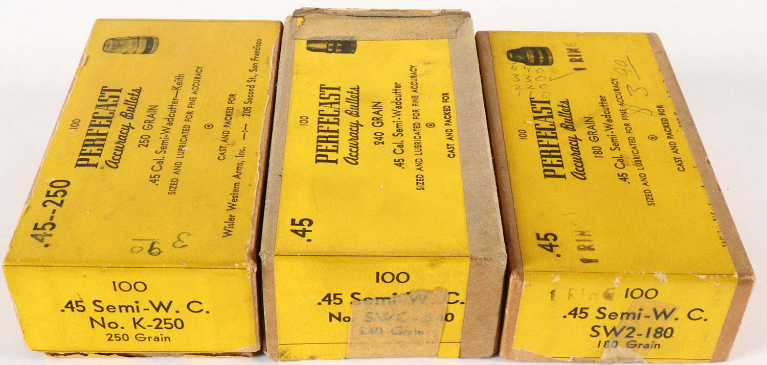 Lot of 3 Perfecast, .45 Cal. Semi-Wadcutter, Various Grains, Full, 1pc, boxes are very solid. Grade: Excellent - Value: 20 to 60
