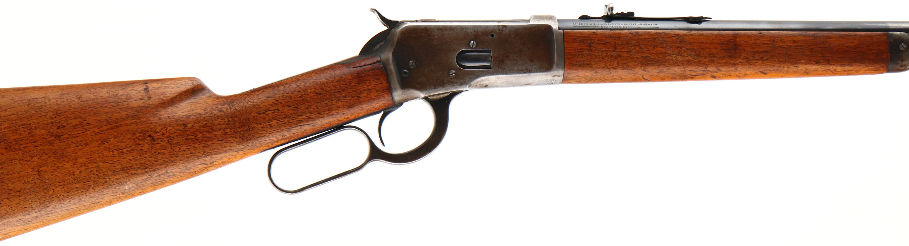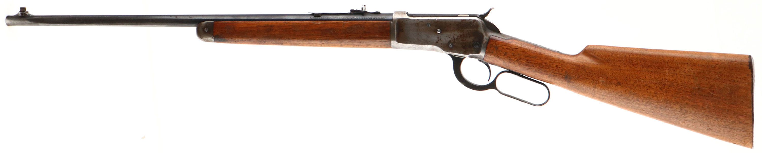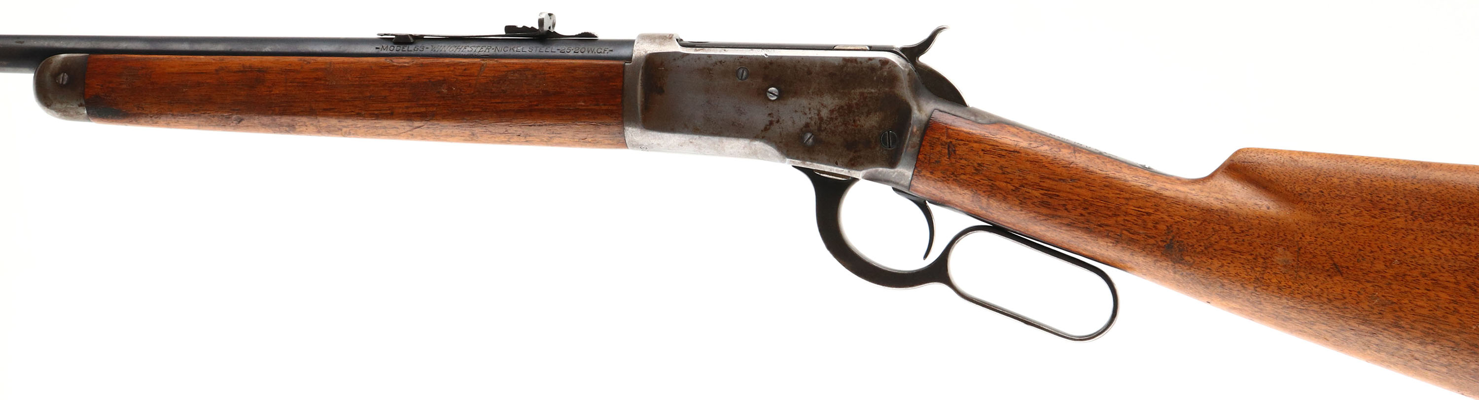 Winchester, Model 53, CAL: 25-20, MFG: 1926, SN: 962933, Lever Action Rifle, 22'' Tapered round barrel. 6 shot 2/3rds mag. In 1924, Winchester introduced the Model 53 lever-action rifle as a more modern version of the model 1892. Production lasted just 8 yrs until 1932, with limited production of approximately 15,000+. They were initially serialized separately, but in 1926-27 they were serialized with the 92 rifles that were still being assembled from remaining parts & later with the next generation model 65 rifles that along in 1933. The original straight grip wood stocks are excellent, with scratches, nicks & contusions. There is a short crack at the right shoulder corner of the wrist. The metal blue finish on the barrel rates 75%, while the receiver has worn mostly gun metal gray, with areas of a thin brown patina. Bore is excellent & bright. The rifle is fitted with an adjustable rear & updated front blade sights. Serrated metal buttplate. A nice example of a fairly rare model 53. FFL or C&R Req. - Value: 1200 to 2000