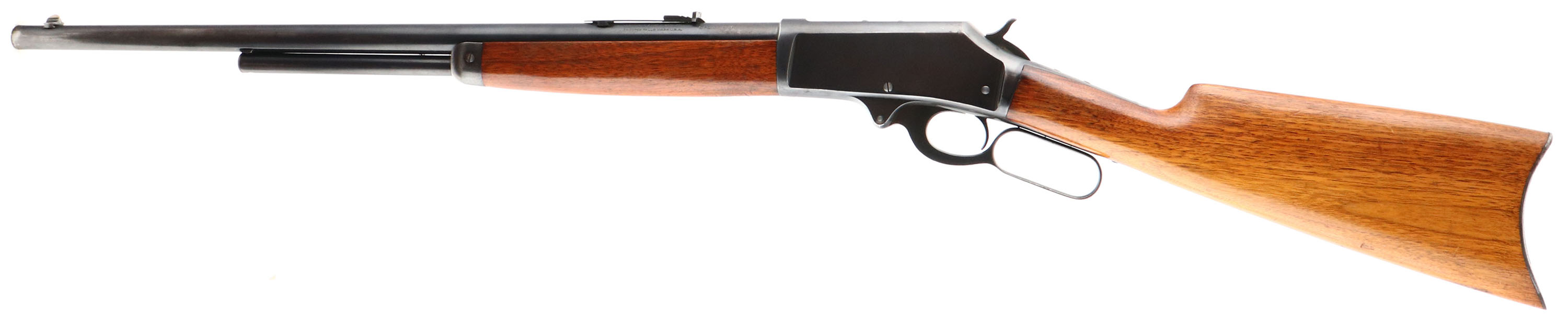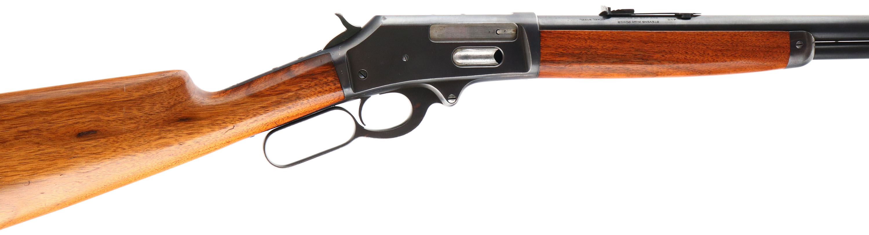 FANTASTIC & RARE J. Stevens, Model 425 High Power, marked Cal. 32 REM, MFG: 1911-17, SN: 3010, Lever Action Rifle, 22'' Round barrel, 2/3 length mag., The 425 was designed by John Redfield & represented the J. Stevens Arms & Tool Companies entry into the centerfire arena. Although some sources erroneously claim there were 26,000 of these rifles produced, that is incorrect. More commonly accepted amongst knowledgeable collectors & factory historians is that less than 5,000 were produced & possible less than 1,000. The model was only produced or cataloged from 1911-17 & was serialized with at least one other Stevens model produced during this period, thus accounting for the confusion surrounding serialization. Peter Zobian, a prominent 425 collector has concluded from his research & exhaustive search, that Brophy's information in the Marlin book is most likely correct in that Steven (Savage) only made less than 1,000 of these rifles. As of 2010, his research had only turned up 117 examples, serialized between 1,021 & 5,594 in the four calibers, .25, .30, .32 & .35 REM. Remember other models also fall into that same serialization. Regardless of which production figure is actually correct, this model is one of the rarest of the lever models produced during the glory era of lever action rifles, competing with Winchester, Marlin & Savage rifles. The original walnut wood stocks are excellent, displaying very few light scratches & minor contusions to the original & excellent finish. The original metal blue finish rates 95% overall. The top of receiver carries the two factory screw filled holes. Matching SN is located on the inside of the original crescent metal buttplate, on the left side of the upper tang under the wood & on the lower tang under the lever. Bore is excellent. Barrel carries the original adjustable rear & small blade front sights. This is likely the nicest example we have ever offered of this rare & collectible rifle. FFL or C&R Req. - Value: 2000 to 3500