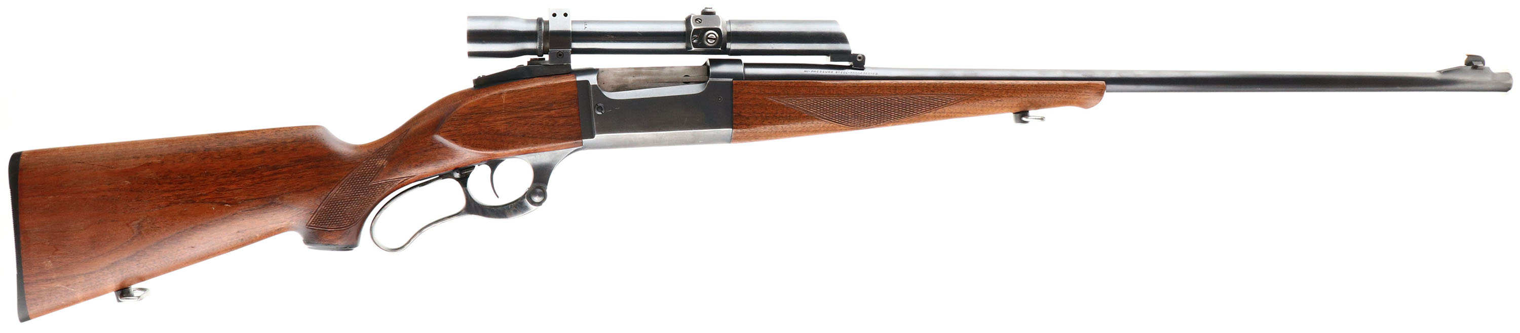 Savage, Model 99, marked 300 Savage Cal., MFG: 1945, SN: 433375, Lever Action Rifle, 24'' Round barrel. The original checkered & capped pistol grip wood stock & Schnabel forend are excellent, with minor scratches, scuffs & scrapes to the original thinning finish. The original metal blue finish on the barrel rates 80%, 60% on the receiver & case-colors on the lever. The rifle is fitted with a Weaver K 2.5 scope, while the barrel carries a ramped tall blade front sight. Bore is excellent. The stock carries a grooved plastic buttplate. Action remains smooth & tight. Sling swivels. A very nice example. FFL or C&R Req. - Value: 800 to 1500