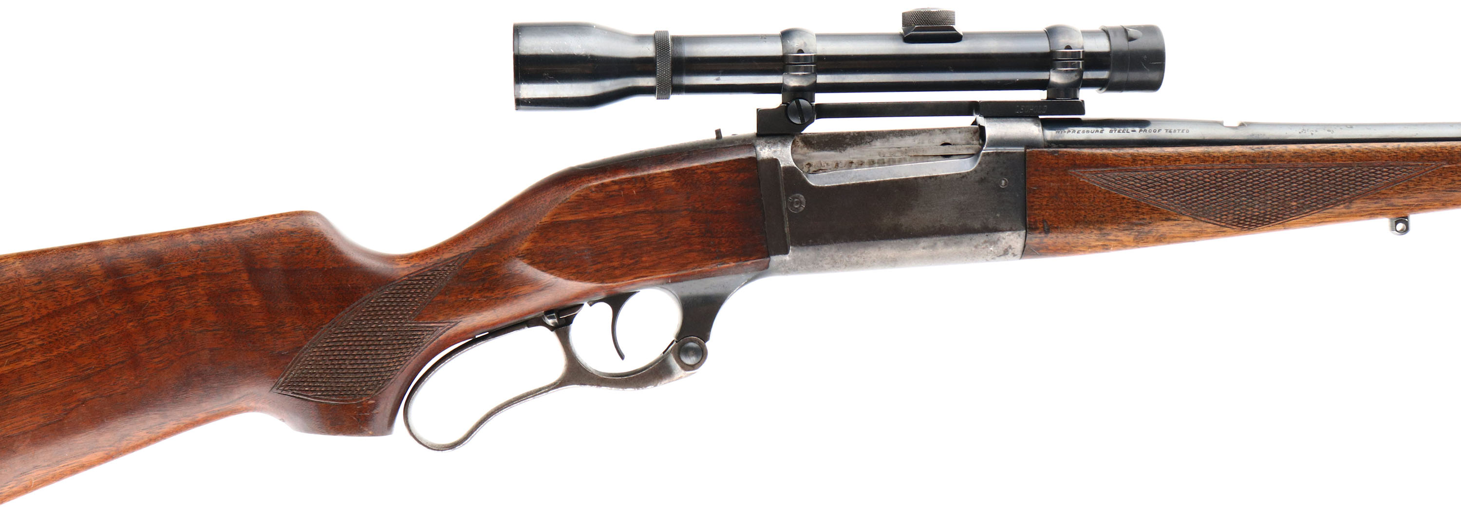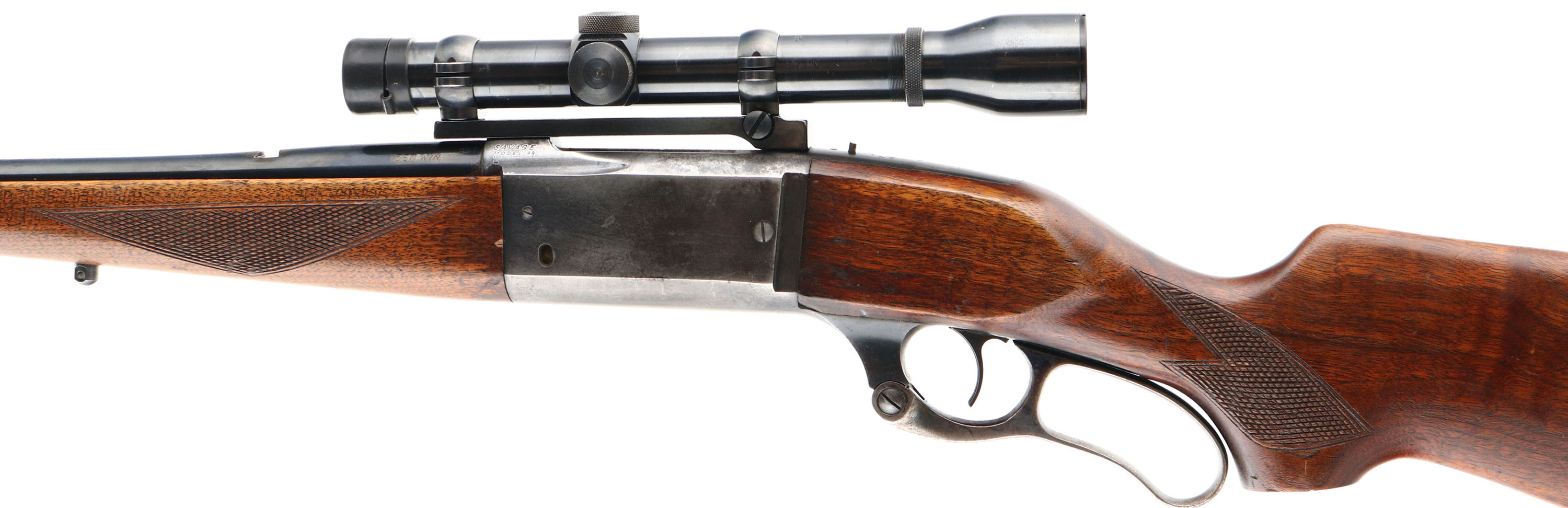 Savage, Model 99, CAL: 358 WIN, MFG: 1956, SN: 923960, Lever Action Rifle, 24'' Round barrel. The original checkered & flat pistol grip wood stock & Schnabel forend are very good, with several minor scratches, scrapes & contusions to the original thinning finish. Missing the pistol grip cap. The original metal blue finish on the barrel rates 75%, while the finish on the receiver has worn mostly gun metal gray, with a spotty thin brown patina & some light rust pitting. Receiver has been tapped & drilled to carry a Sears 3.5 scope on a Leupold base. Barrel has an open rear dovetail & a ramped tall blade front sight. Bore is excellent. The stock carries a Hogue solid recoil pad. Action remains smooth & tight. Sling studs. FFL or C&R Req. - Value: 500 to 1000