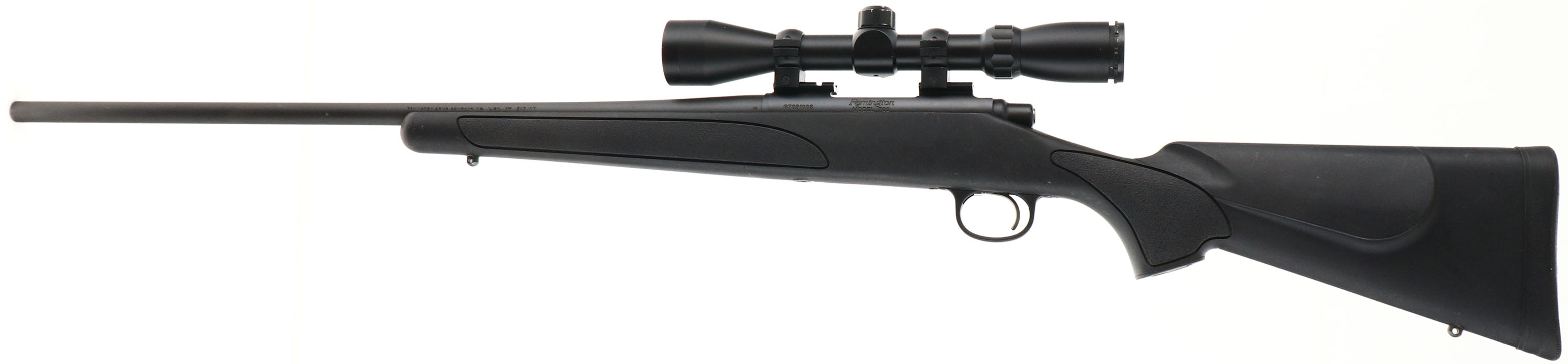 Remington, Model 700, CAL: 243 WIN, MFG: Modern, SN: G7091003, Bolt Action Rifle, 24'' round barrel. The original cheeked & flat pistol grip synthetic stock is excellent, with textured grip insets at the pistol grip & forend. The factory metal finish rates 99% overall. Bore is excellent. The receiver holds a Remington 3-9x40 scope, while the barrel has no sight provisions for front & rear sights. Stock carries the factory Remington solid recoil pad. Sling studs. FFL Req. - Value: 500 to 800