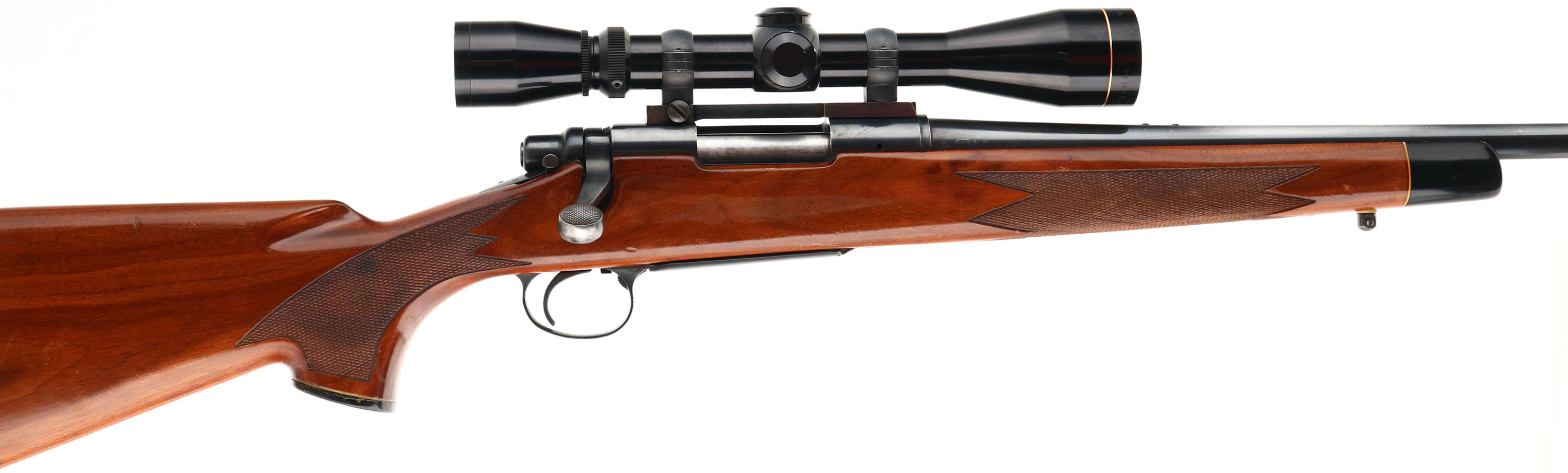 Remington, Model 700 BDL , CAL: 243 WIN, MFG:1974, SN: 6780297, Bolt Action Rifle, 22'' round barrel. The original cheeked, checkered & capped pistol grip Monte Carlo wood stock is excellent, with several minor scrapes, scratches & contusions to the original high gloss finish. The stock carries an ebony toned forend tip & plastic pistol grip cap, which has a small missing chip on the back edge. The original metal blue finish rates 80% on the receiver, 75% on the barrel, with the barrel loss due to spotting & thinning.. Original blue on the floorplate & trigger guard, rates 90%. Bore is excellent. The receiver holds Leupold Vari-X Iic 3-9 scope on Leupold blocks & rings, while the barrel is tapped with factory sight provisions for front & rear sights. Stock carries a Pachmayr White Line ventilated recoil pad. Sling studs. FFL or Req. - Value: 600 to 900