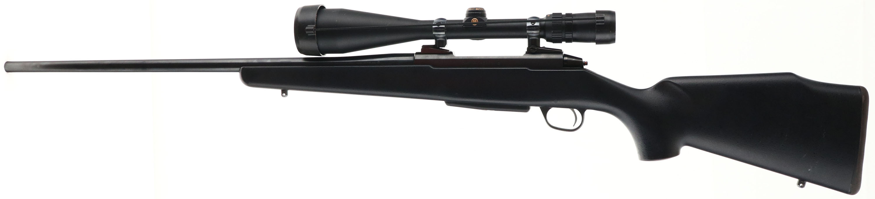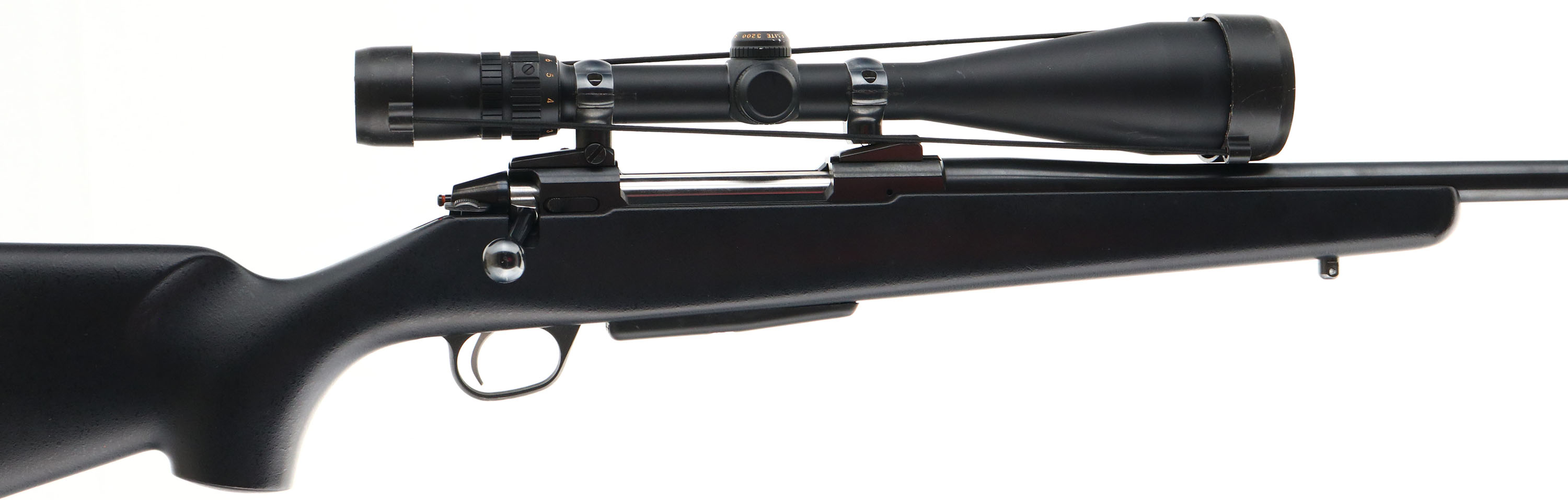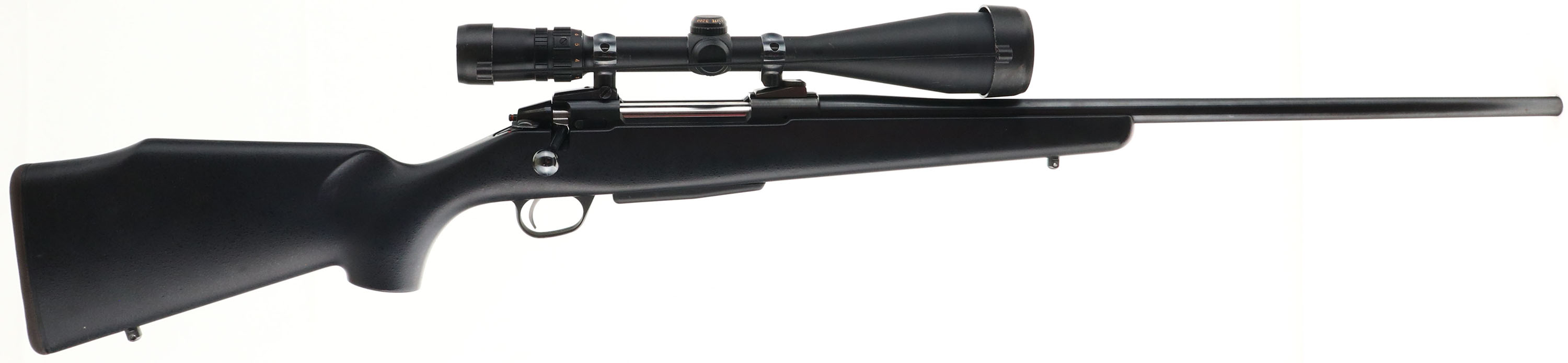 Sako, Model M995, CAL: 7mm Weatherby Mag. MFG: Modern, SN: 853001, Bolt Action Rifle, 24 1/2'' barrel. Made in Finland & imported into the U.S. in the early 90's by Stoeger. The original flat pistol grip & Monte Carlo style synthetic black stock is excellent, with few handling marks. The original metal blue finish rates 95% overall. Bore is excellent. Fitted with a Bushnell Elite 3200 Scope mounted on the receiver's has integrated scope mount rails, with no open sight provisions. Buttstock carries a thin solid black rubber recoil pad. Comes with a 2nd detachable mag. A high condition & fairly rare modern hunting rifle in a powerful Weatherby Magnum caliber. FFL Req. - Value: 800 to 1200