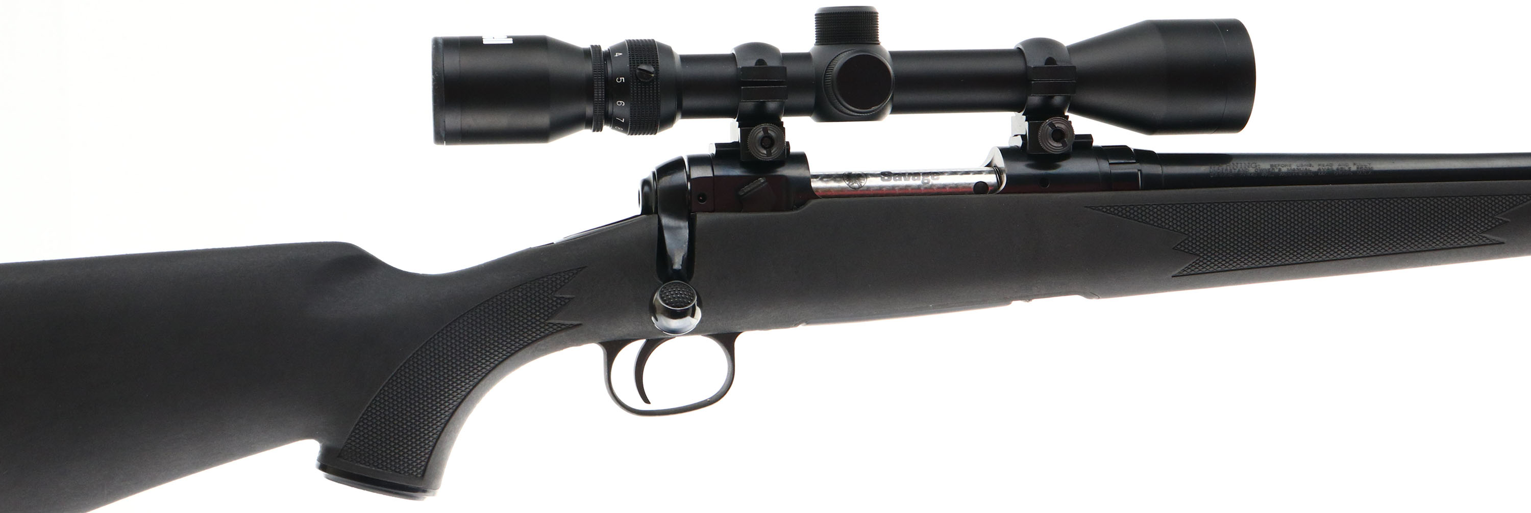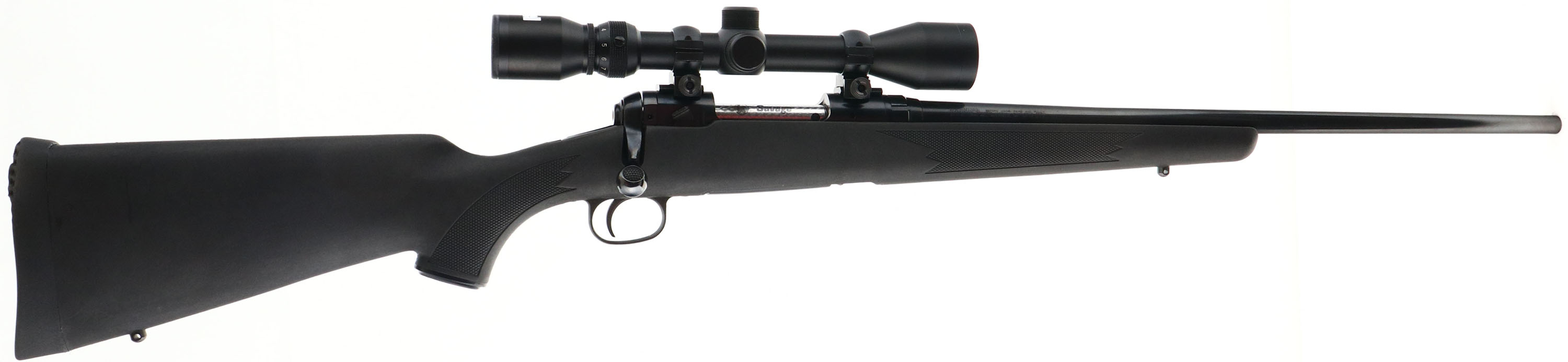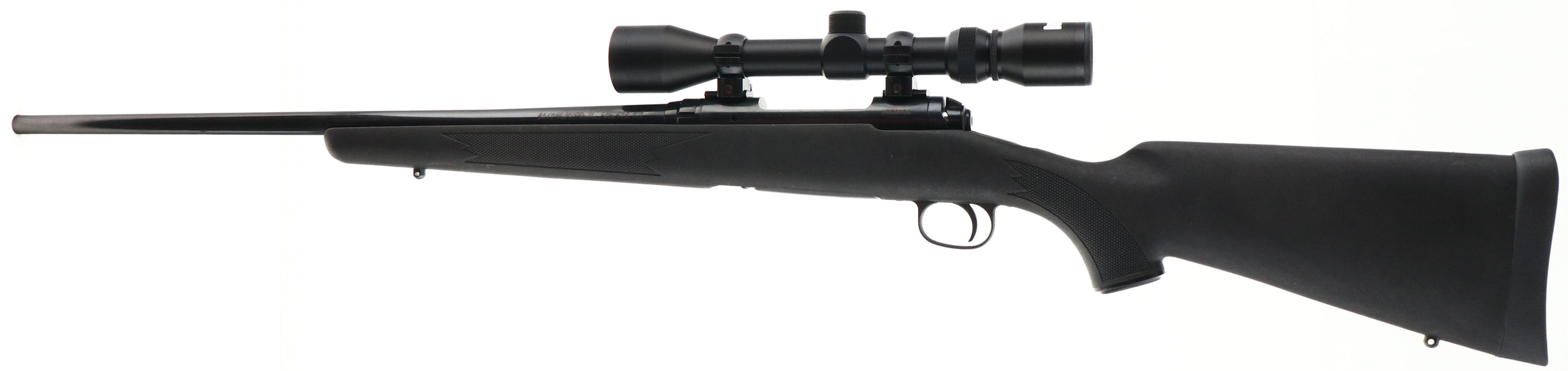 Savage, Model 11, CAL: 243 WIN. MFG: Modern, SN: H036986, Bolt Action Rifle, 22 1/4'' 1 in 8 twist barrel. The original checkered & capped pistol grip synthetic stock is excellent, with few handling marks. The original metal black finish on the receiver & carbon steel barrel rates 95% overall. Bore is excellent. Receiver fitted with Bushnell 3-9x scope, with no open sight provisions. Buttstock carries a solid black rubber recoil pad, with some compression at the top. Accu Trigger system. Four round detachable mag. Sling studs. FFL Req. - Value: 350 to 500