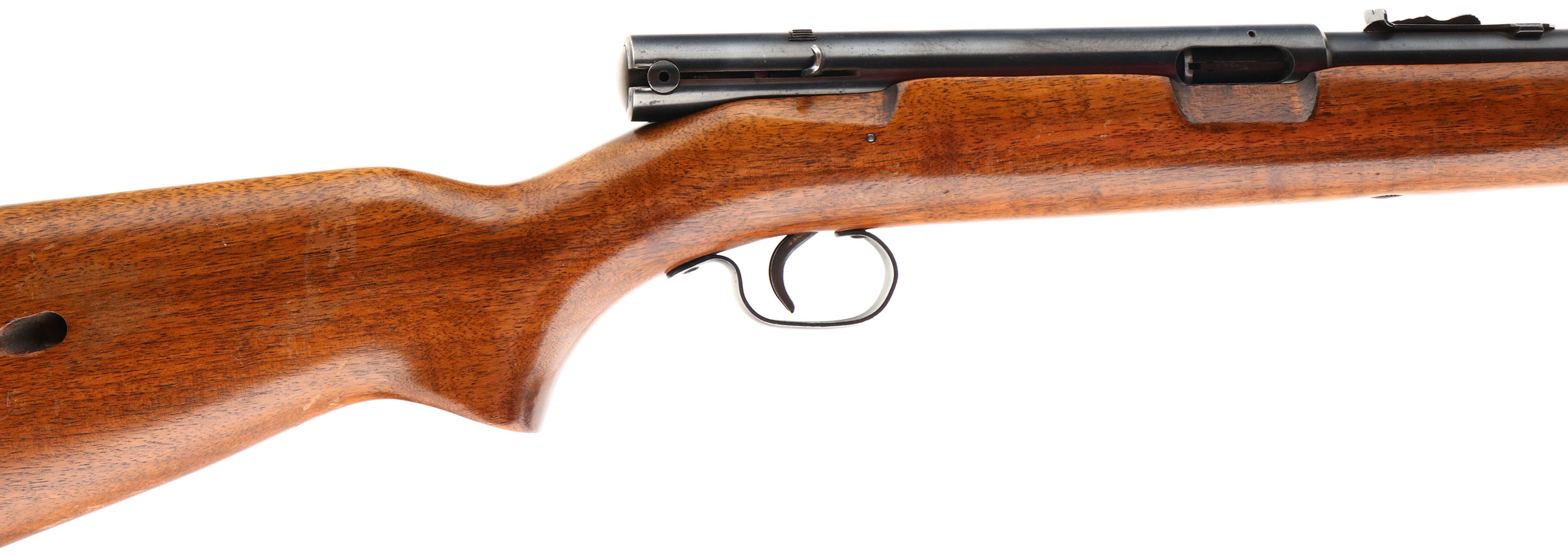 Winchester, Model 74, Marked .22 SHORT, MFG. 1947, SN: 153367, Semi-Auto Rifle, 22'' Tapered round barrel, Although some 400,000 plus model 74 rifles were produced, it is a rifle that is seldom encountered & little is know. Cartridges load through the buttstock once the mag follower is removed through the buttplate. High condition factory original examples such as this rifle do command a premium among collectors. The original American straight grain walnut & pistol grip stock is excellent, with several finish level scrapes & scuffs to the factory finish. The factory metal blue finish rates 90% overall. Bore is excellent. Fitted with an adjustable rear sight & factory front sight. The unusual receiver mounted safety functions by sliding it side to side within a dovetail channel. An excellent & original condition, Winchester semi-auto .22. FFL or C&R Req - Value: 300 to 600