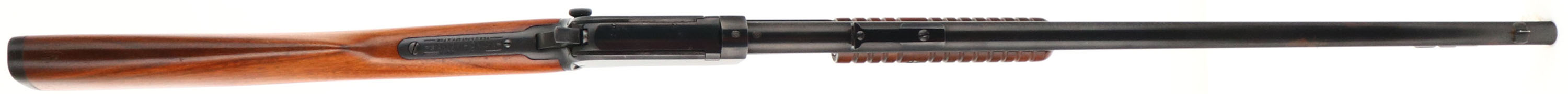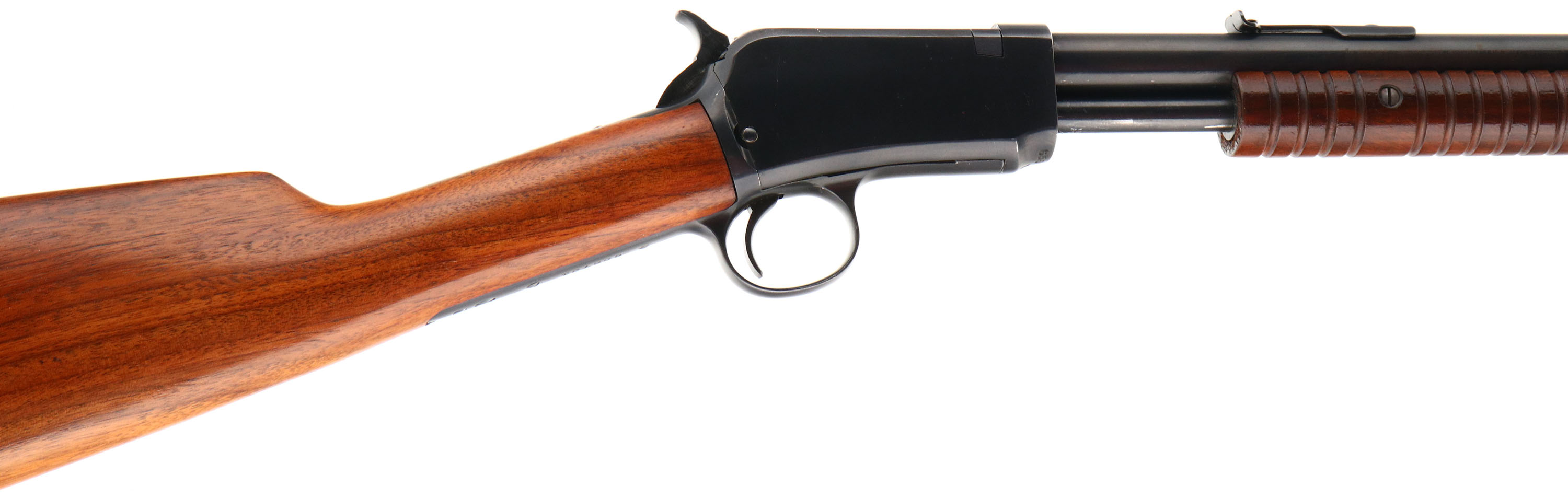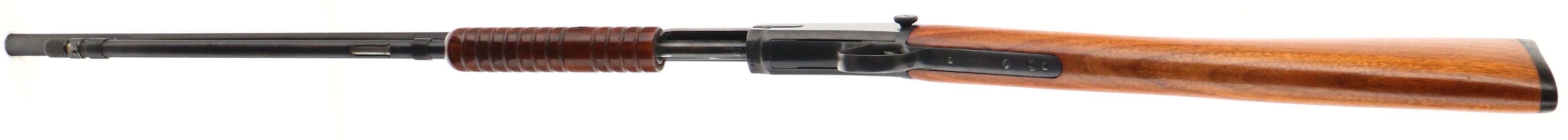 FANTASTIC Winchester, Model 06 , .22 S. L. LR., MFG: 1923, SN: 656731, Pump Action Rifle, 20'' Round barrel, The original straight grip walnut stocks are excellent, with wonderful straight grain. The forearm is of the corn cob style of the model 1890. The original finish is excellent, with virtually no rubs or handling marks. The original metal blue finish on the barrel is 90%, with loss due to a handful of spots of flakey finish loss starting to tone to a thin brown patina. The receiver & mag tube display 98% of the original blue. Bore is excellent. Fitted with standard barrel sights. Winchester plastic buttplate, with engraved screws. A truly excellent, original & collectible condition example. FFL or C&R Req. - Value: 2000 to 3500