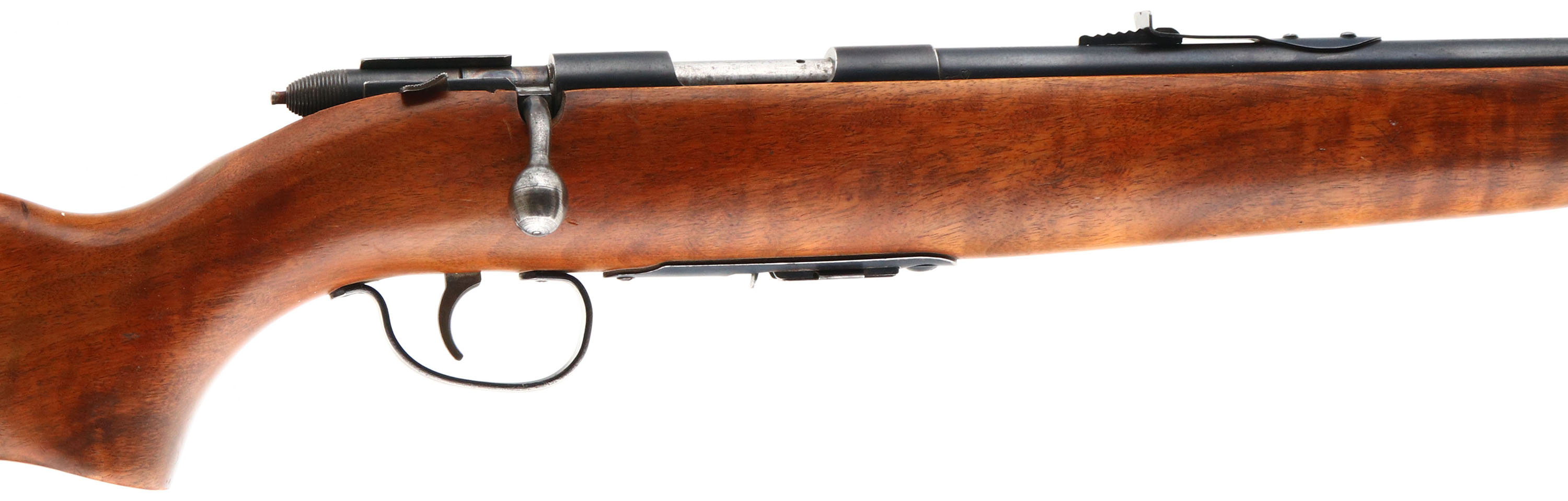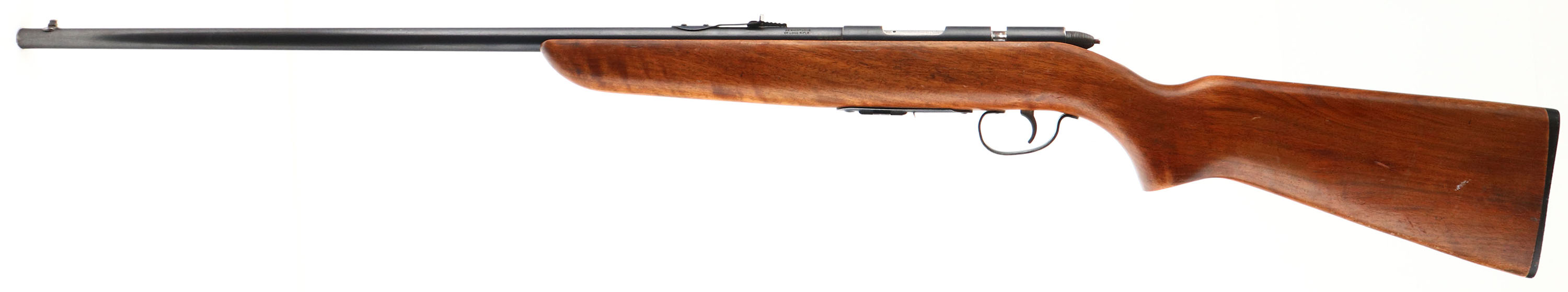 Remington, Model 511 Scoremaster, 22 S. L. LR, MFG: 1939-62, SN: NONE, Bolt Action Mag Fed Rifle, 25'' round tapered barrel. The original flat pistol grip stock is excellent, displaying several minor surface scrapes, scratches or contusions to the original finish & a couple of larger gouges to the left side of the stock. The original metal blue finish is 85% overall. Bore is excellent. Fitted with standard open sights. The stock carries the original buttplate. Remington marked detachable mag. A nice original example. FFL or C&R - Value: 200 to 400