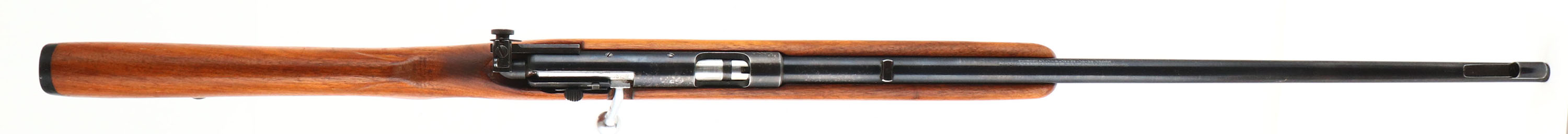 Marlin, Model 80-DL, 22 S. L. LR, MFG: 1941-64 SN: NONE, Bolt Action Mag Fed Rifle, 24'' round barrel. The original flat pistol grip stock is very good, displaying several minor surface scrapes, scratches or contusions to the original thinning & flaking finish. Some areas of minor moisture damage on the stock to the finish. The original metal blue finish is 80% overall, with some spotting & cleaned rust speckling. Bore is very good. Fitted with an adjusting side mount receiver sight, blank filled rear dovetail & hooded ramp front sight. The stock carries the original buttplate, with a small edge chip at the top. Original detachable mag. Open shallow hole on belly of stock from missing Marlin trademark bullseye. Sling swivels. FFL or C&R - Value: 150 to 300