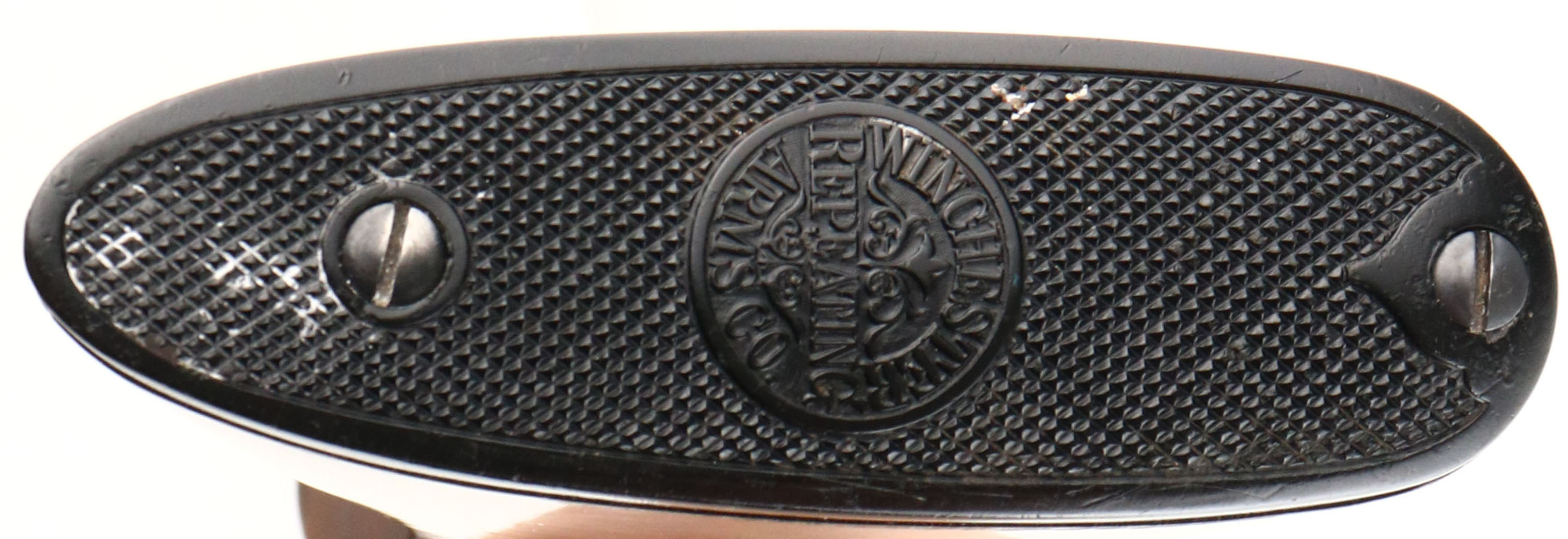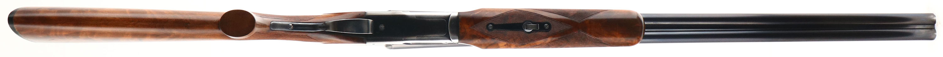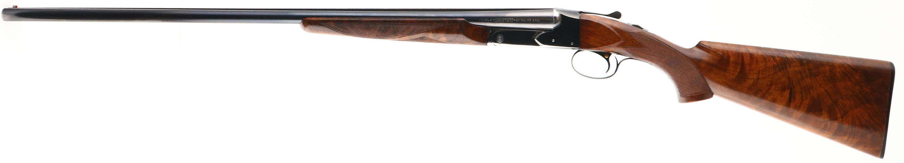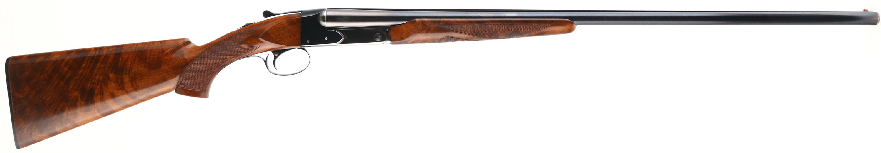 Winchester, Model 21, CAL: 20GA, MFG: 1954, SN: 31400, Break Action SxS Shotgun, Choke: F/MOD, 2 3/4'' chamber, 28'' barrels. The original checkered flat pistol grips tock & forend are excellent. The stocks have beautiful wood figure & feathering patterns. There are handling marks throughout & flaking finish around the buttplate & other sharp edges. The original metal blue finish rates appx 95% on the barrel, with the handling points thinning, beginning to wear to metal gray & the receiver rates 85%, with handling points & edges worn to metal gray. Bores are excellent, with visible striations. The solid, matted rib holds a red front bead. Stock carries a Winchester checkered plastic buttplate. Single selective trigger. FFL or C&R Req. - Value: 6000 to 9000