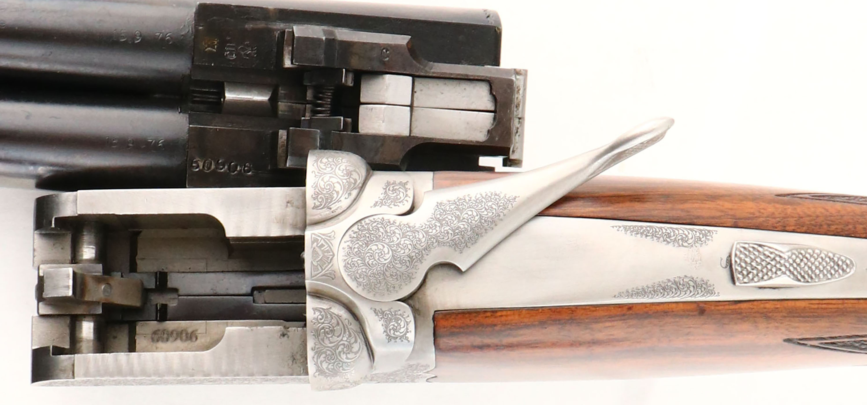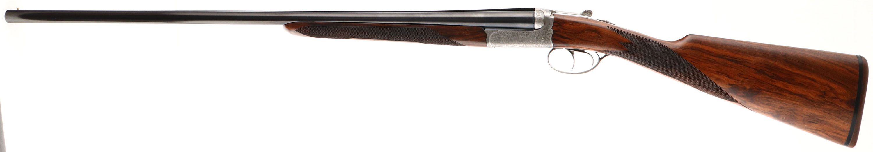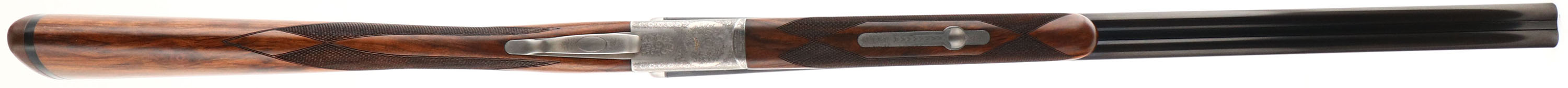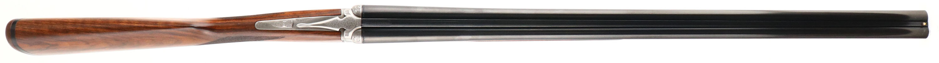 CASED, Chapuis Armes (France), Orvis Classic, CAL: 20GA, MFG: Modern, SN: 60906, Break Action SxS Shotgun, Choke: CYL/CYL+, 27 1/2'' barrels. The solid rib is marked ''ORVIS CLASSIC BY CHAPUIS ARMES''. Both sides of the receiver are marked ''ORVIS'' in a banner & the bottom of the receiver has a gold tone ''1856'' (the date Orvis was founded). The gold tone is a little worn, with the edges of the numbers being more pronounced. The bottom of the forend is marked ''CHAPUIS-ARMES JUXTAPOSE PROGRESS''. The AAA Grade Walnut checkered straight grip stocks are excellent. There are minor handling marks to the hand applied oil finish. The metal blue finish on the barrels rates 98%+, with areas beginning to tone to a dark chocolate patina & the Old English coin silver finish on the receiver is excellent. The receiver, trigger guard, break lever, barrel end & forend release lever all display intricate laser engraved floral scroll. Bores are excellent. The solid rib holds a single front bead. Stock carries a Decelerator solid brown rubber recoil pad. Double trigger. LOP: 14 3/4'' overpad (to front trigger), DAH: 2 3/4'', DAC: 1 1/2''. Comes with factory CA hard case, with owners manual & purchase certificate. Orvis Company began importing two versions of Chapuis shotguns for sale under the Orvis brand. This Classic model retails for $4,595. A beautiful example of a French made shotgun. FFL Req. - Value: 2500 to 4000